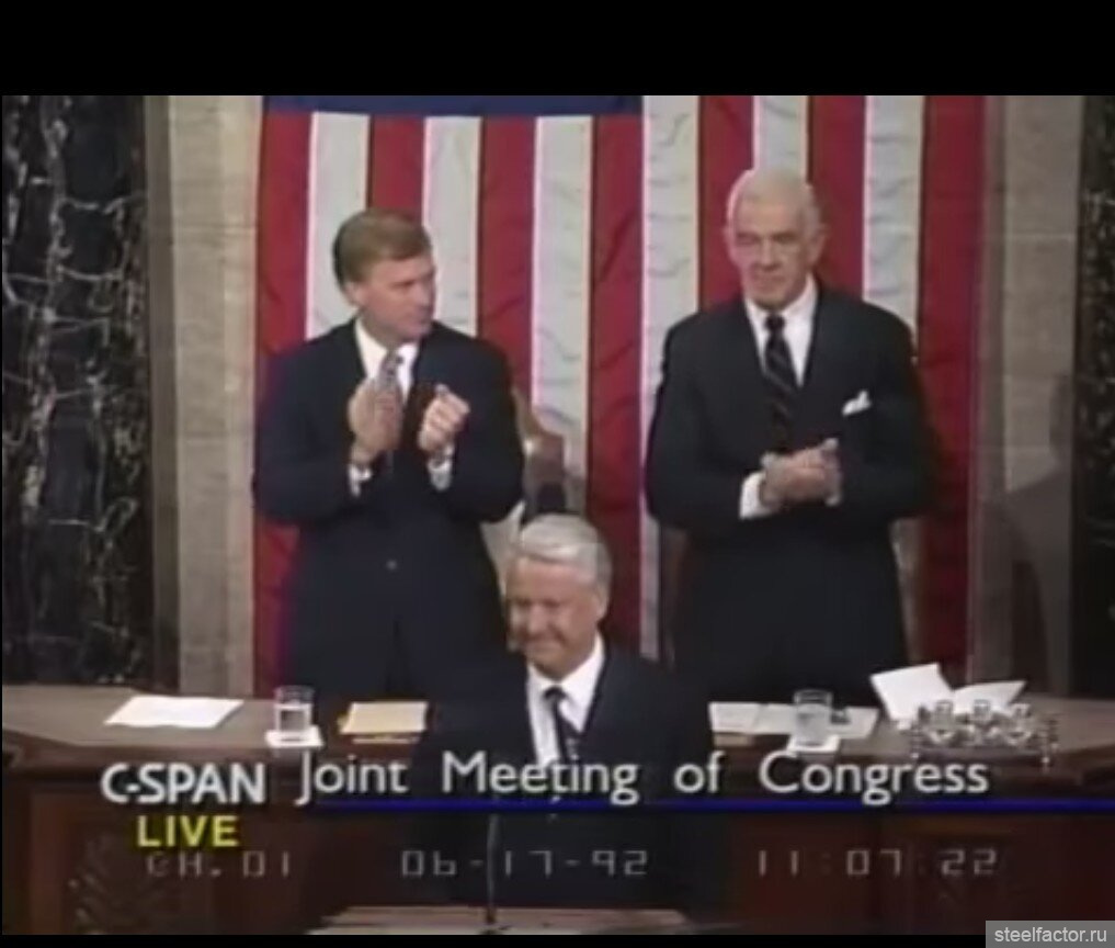 Пройдет год, и Ельцин на трибуне Конгресса США под бурные овации скажет: