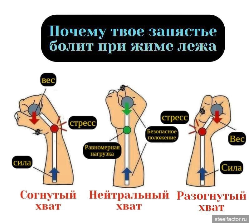 Вместо этого расположите штангу ниже и держите запястье в нейтральном положении, чтобы обеспечить самый безопасный и сильный жим лежа!