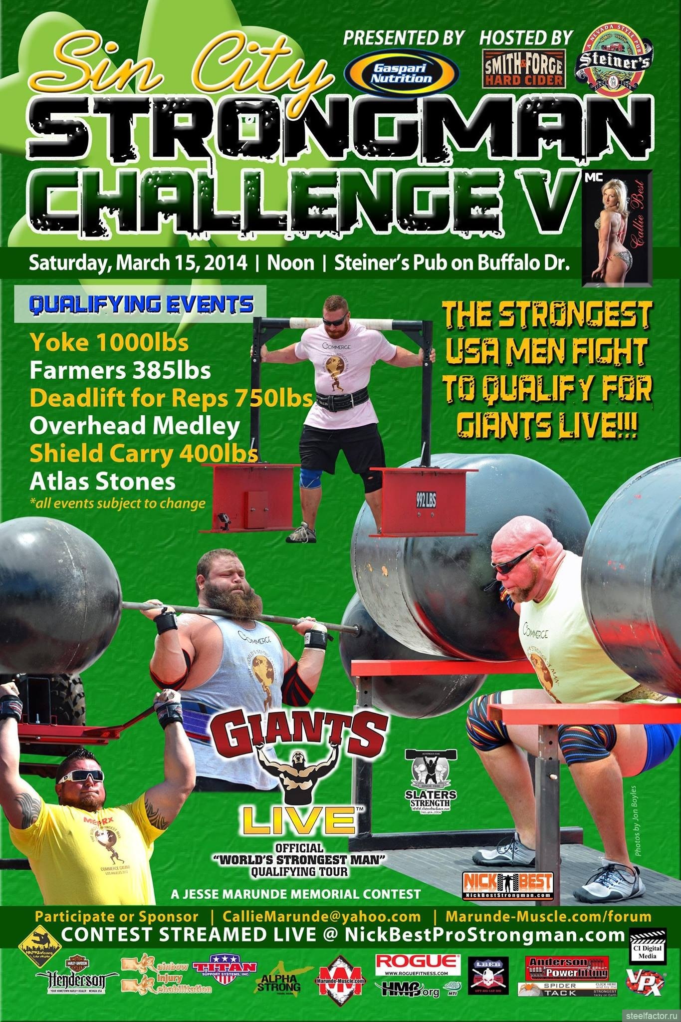 Предварительный состав упражнений на World’s Strongest Man-2014 (конец марта - начало апреля, Лос-Анджелес, США).