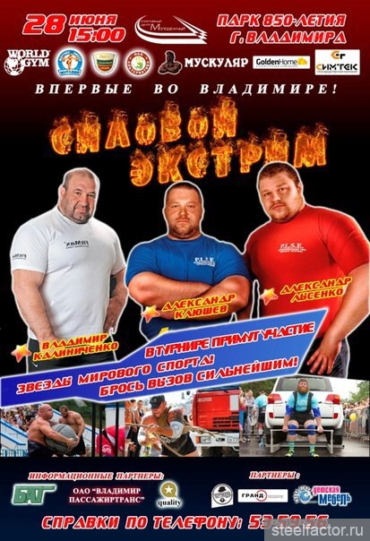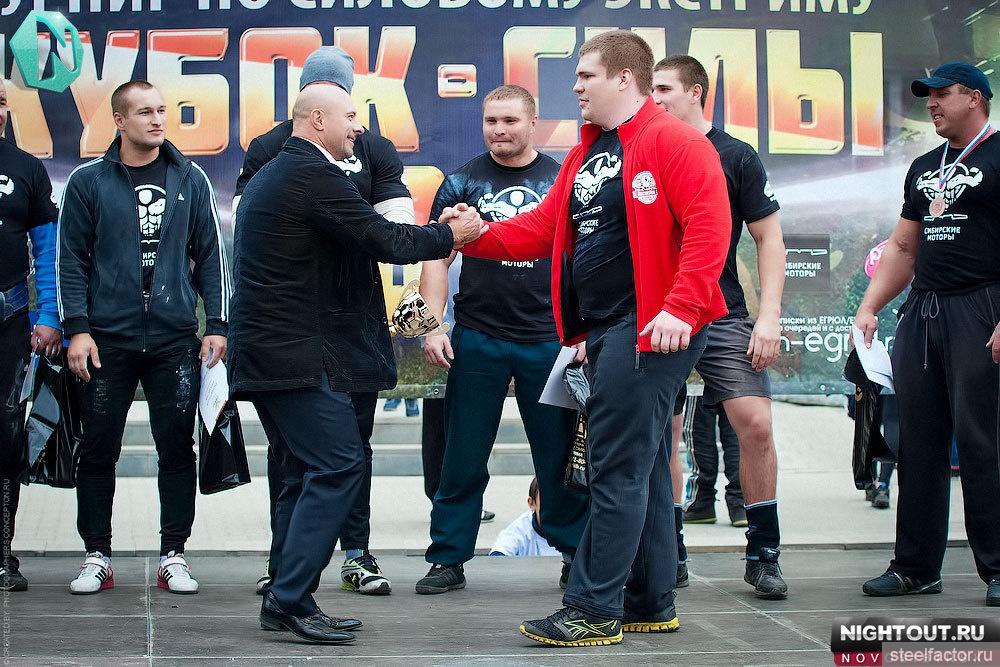 Во первых хочется поблагодарить Федерацию Силового Экстрима.Новосибирска . и лично президента Сергея Григорьева за прекрасный праздник силы.Зрелище было великолепное, вырос уровень атлетов и что самое главное растет интерес зрителей за 2,5 часа соревнований число присутствующих болельщиков-удвоилось!!!Хочется отметить прекрасно подготовленное оборудование причем изготовленное по международным стандартам!!!Думаю следующий турнир организованный Федерацией Силового Экстрима.Новосибирска. будет носить статус международного!!! Также хочу отметить прекрасное выступление моего ученика Евгения Маркова он вновь одержал убедительную победу!!! Ну и Конечно выступление силового Шоу " Русская Сила " в исполнении сильнейших атлетов России Юрия Колмакова и Александра Манцерова произвели настоящий Фурор!!! Ну а призовая тройка выглядит так: 1. Евгений Марков. Омск, 2. Валерий Остапенко. Междуреченск, 3. Алексей Гладких. Новосибирск!!!