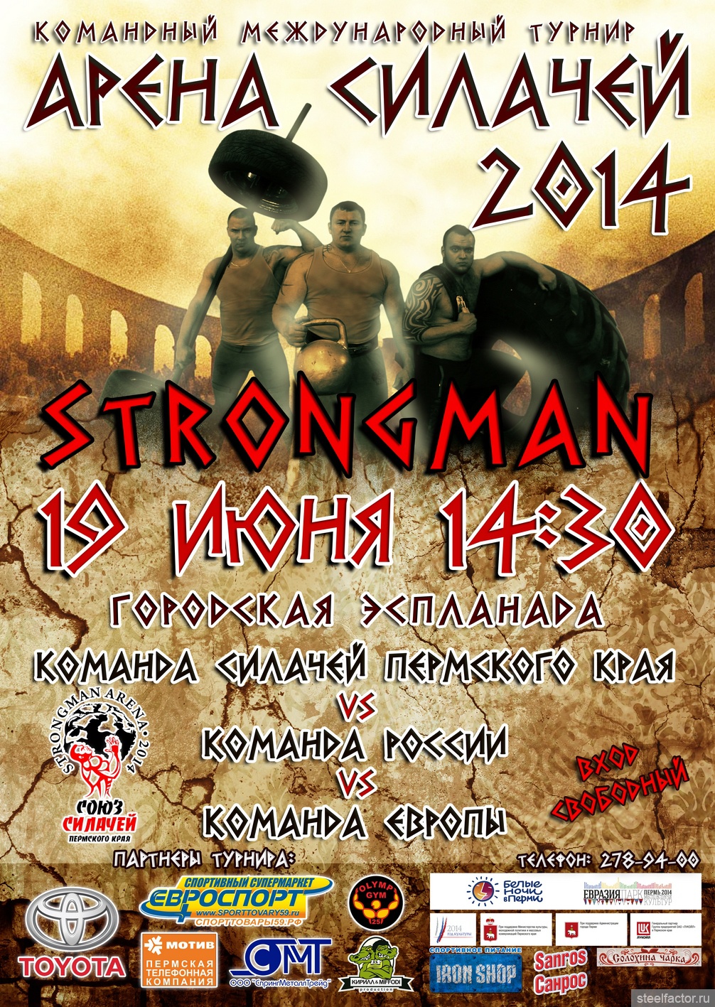 19 июня в 14.30 на городской эспланаде в рамках фестиваля «Белые ночи» в Перми, Союз Силачей Пермского края проводит командный международный турнир по Силовому Экстриму «Арена Силачей 2014» .