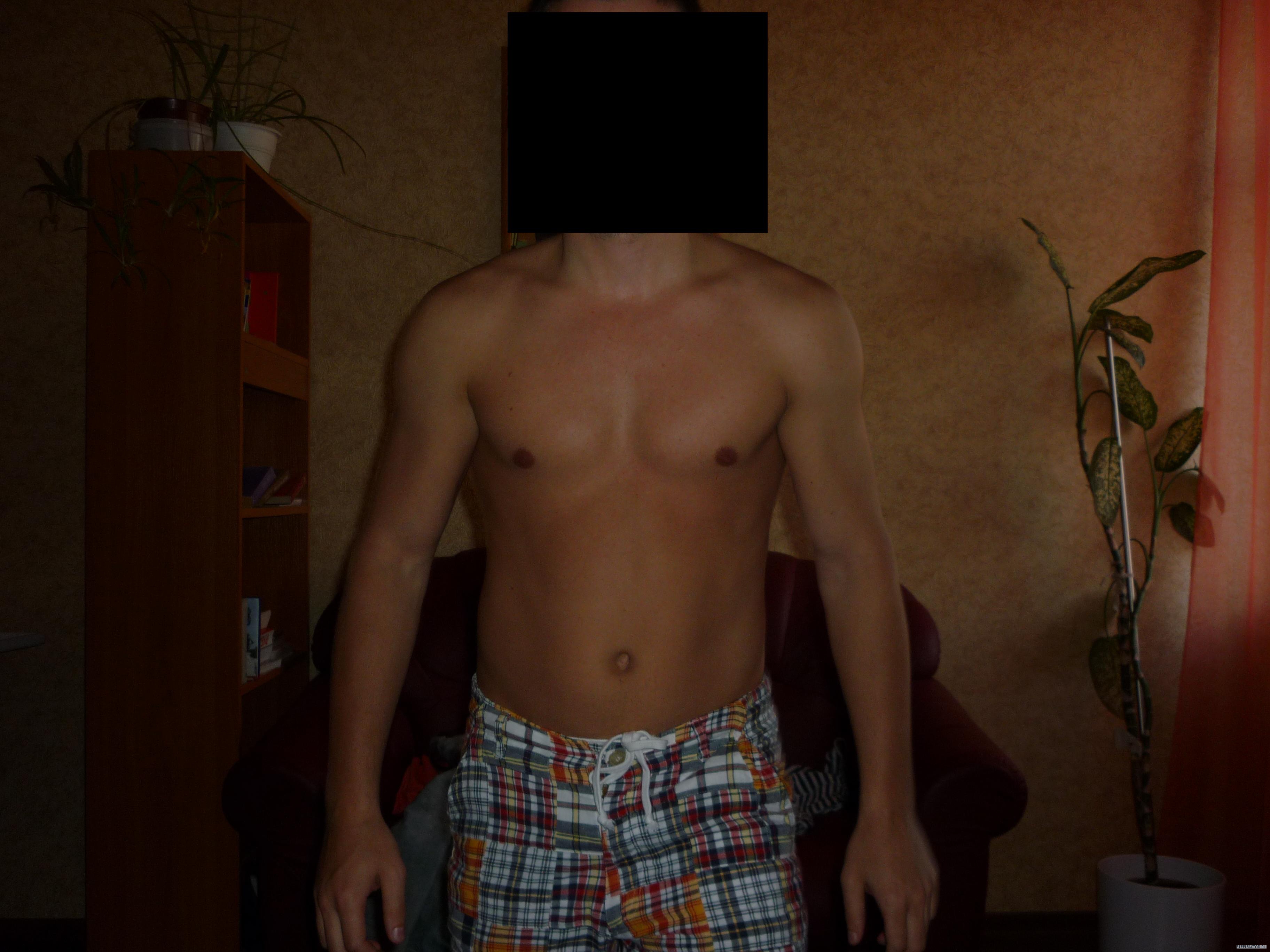 19 лет. Никогда не занимался никаким спортом. Вид мягко говоря дистрофичный. Хотя при росте 179 весил около 64 кг. Подтянуться или отжаться на брусьях не мог ни разу. С апреля начал заниматься в спортзале. По совету знакомых каждую тренировку качал разные группы мышц. Последнее время больший акцент делал на укрепление рук и плеч (т.к. при жиме руки тряслись). Стал больше питаться естественно. В итоге спустя почти два месяца стал весить 72, и кое-какие результаты начинают появляться. Но подтянуться или отжаться от брусьев пока все равно не могу, т.к. слабая грудь и спина. Поэтому после того, как немного укрепил руки и плечи, решил делать базовые упражнения.