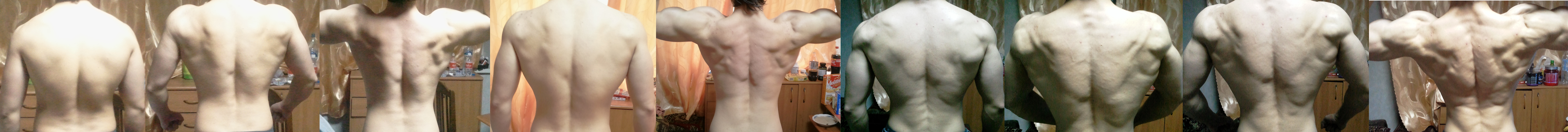 что-то а ж не верится! если такие изменения имеют место быть за 4-5 месяцев, да еще и без фармы - я завидую твоей генетике! у обычного рядового чела со средним потенциалом (коих 99%) - за такой промежуток времени никогда не получится себя так изменить!!Вот фото спины,