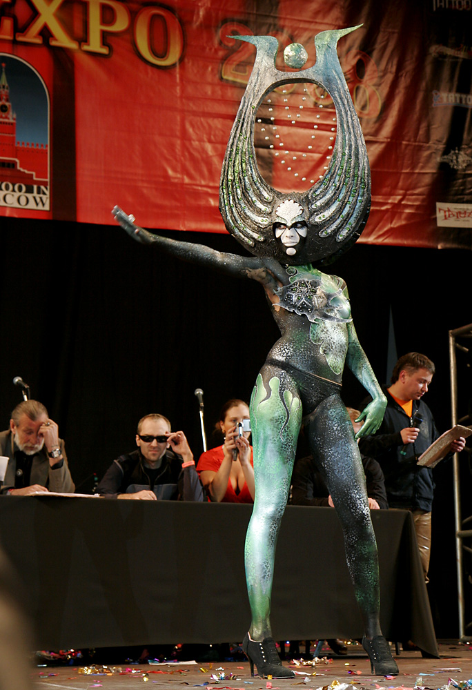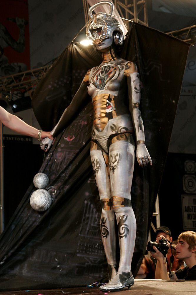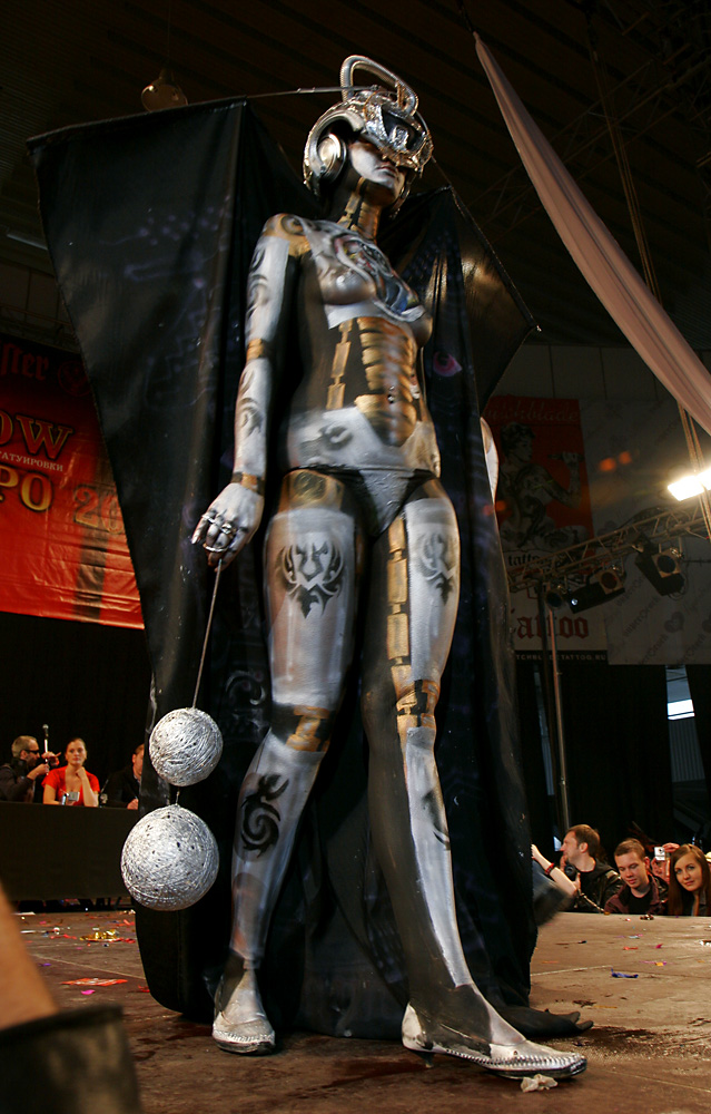 правда, откровенно говоря, в этот раз тату были не очень. в прошлом году было и фриков и готов, и народ был раздетый по погоде... море раных татуировок... в этот раз все одеты. покорило шоу бодиарта. посто фантастично.