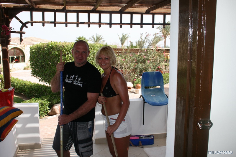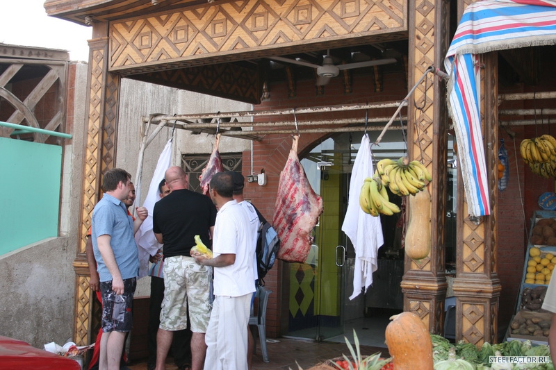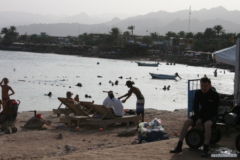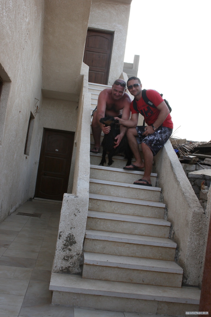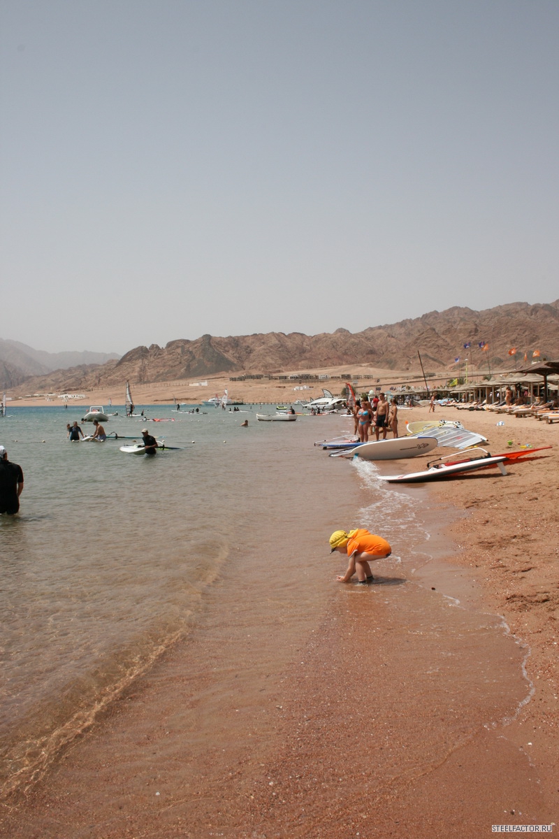 Араб добросовестно убирал номер...краватки заправлял..чистил..мыл...но как грится не подмажешь не поедешь..5 фунтов получал..и кайфовал.Ради прикола взялись за швабры...но он тихо шептал что его уволят нах!!!еСЛИ УВИДЯТ..хОЗЯИН увидел...и долго смеялся показывая большой палец вверх..Металитет ебть.На пляже очень много детей...и много беременных мамашек..пузом вверх греющих зародышей..Такое ощущение было что вся станция в мамках будующих,ругом лопатки совочки башни с песка...целые траншеи заливающиеся морем...Покупали мясо для барбекю..тьфу шашлыка...11 долларов египетскии прайс...не фунтом меньше.В лавке сам вырезал что мне понравилось..говядина супер правда оказалась .Встреча нашего автомобиля на улицах забитых тоетами..и фордами вызвало бурю эмоции..видели нивы...вездеход каксказал араб..супер гуд кар..Бензин стоит 95...1,5 фунта...соляра 0,75 фунта..1 доллар-5,5 фунтов при том что половина бензина экспортируется из иордании...живут же люди.Непонятненько..все для людей...народа...Рыба отдельная тема...вкусная без привычных для нашего горла костей..но врут арабы...вся рыба размороженная и везется с Каира..в Акапском заливегде находится Дахаб ее не ловят...заповедник типа..но ее разнобразие огромное.Собаки на крышах это нонсенс...но крыша то плоская..вот те и тявкают с удовольствием сверху вниз но при этом дружелюбно машут хвостами.Все рыжие и добрые..всегда идут за туристами сопровождая по городу ..как гиды.Дахаб это не только серфинг...это и мекка дайверов..их тут просто тысячи..люди в черном идут с баллонами за спиной пыхтят в ластах..ныряют...учатся и тонут..Каждый год красное море забирает к себе их души.Круговорот сил в природе ничего не попишешь..Стычки дайвером и серферов постянны...тот выныривает а ему плавник от доски в лоб..хряяясь...Вывесками на русском языке уже не кого не удивить...валом..русскии клуб..русскии ресторан...Русские пришли!!