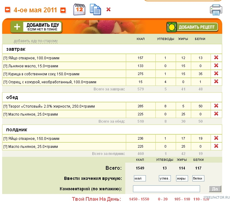 С завтрашнего дня буду вести четко спланированный рацион, до этого был все таки на глазок.