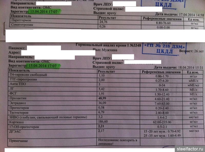 Анализы в состоянии покоя и отдыха - ни о чем не говорят, низкие уровни гормонов у спортсмена-натурала могут говорить о усиленном поглощении гормонов тканями тела. А высокий уровень гормонов может говорить о боязни уколов или врачей, а не о здоровье желез.