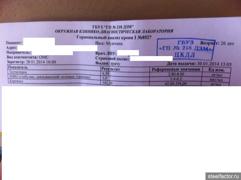 Анализы в состоянии покоя и отдыха - ни о чем не говорят, низкие уровни гормонов у спортсмена-натурала могут говорить о усиленном поглощении гормонов тканями тела.