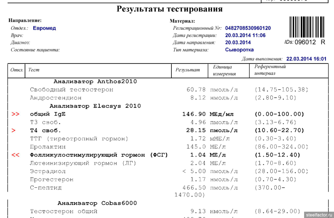 Недавно сдал анализы на гормоны: