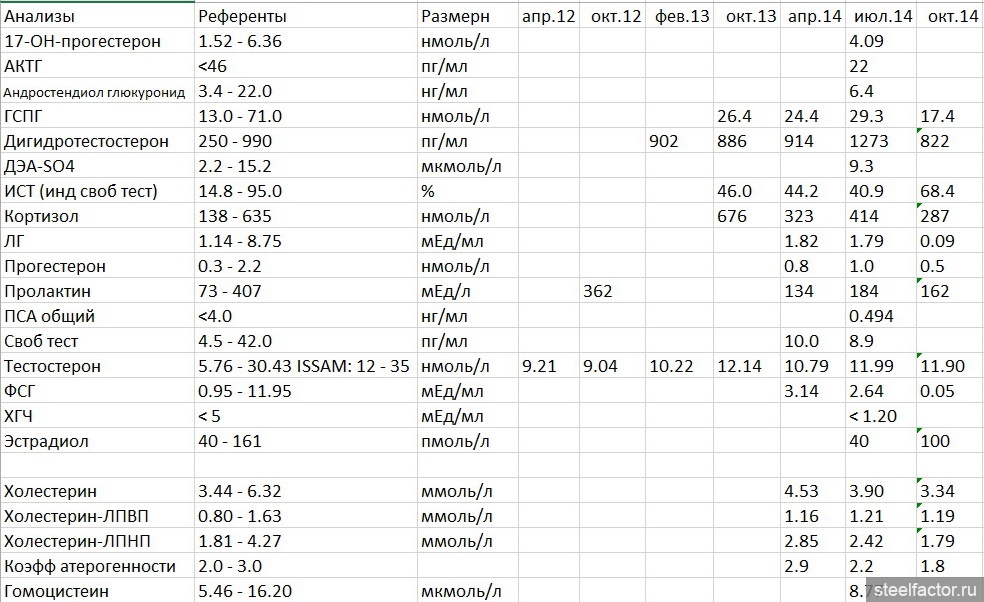 Сами анализы и сводная таблица за все время: