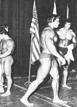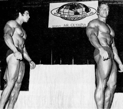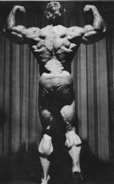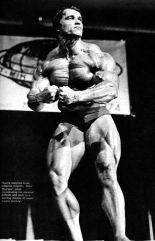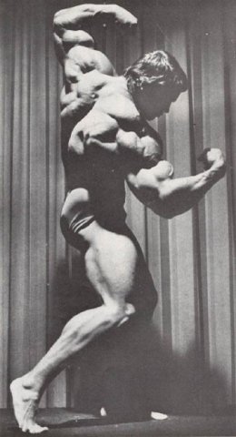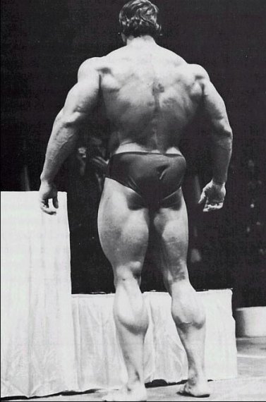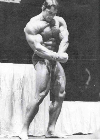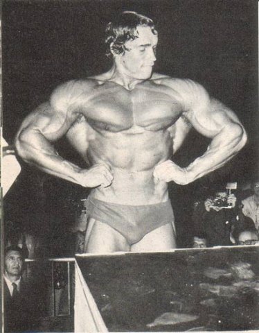 А елси взять с тех же соревнования вот эти фото,так уже не кажется!))))))))))))))Когда уже люди перестанут смотреть искажённые фотографии!Ну серьёзно,вы что не видите насколько то фото снято снизу и насколько оно искаженно вширь?РЕбята.одумайтесь,вот фотки с техже соревнований!Арнольд,пик массы 1974 год ,гостевое... нереально массивный верх, даже по современным стандартам