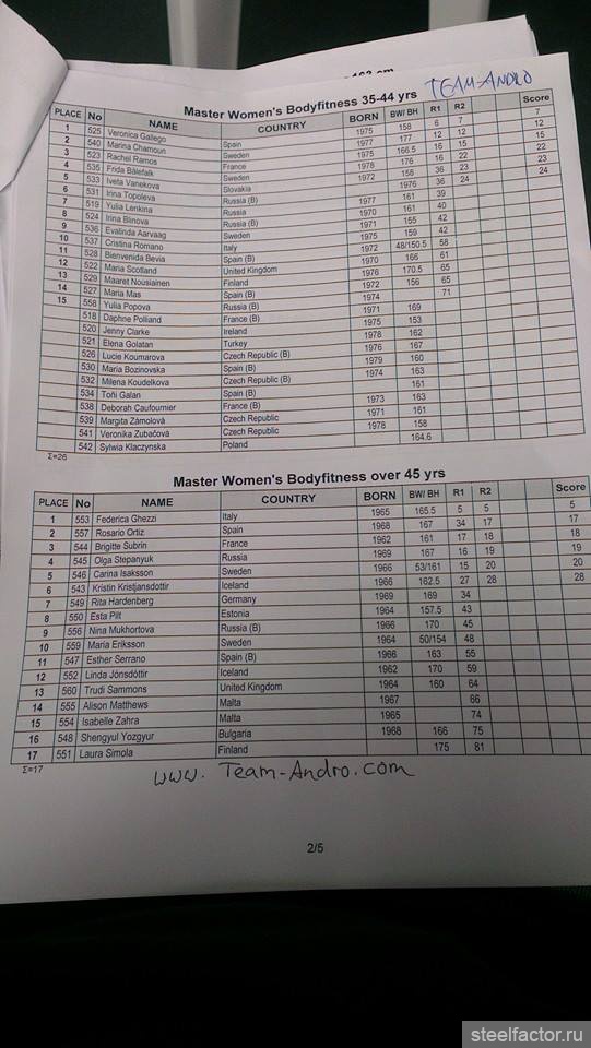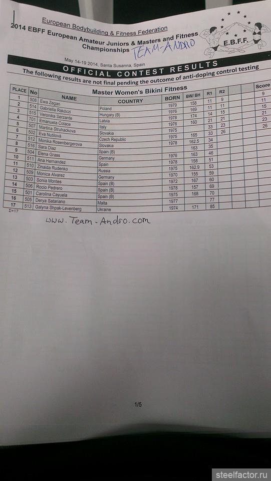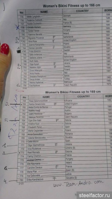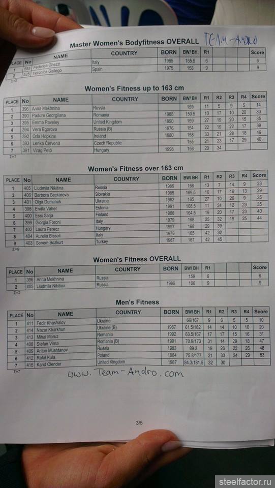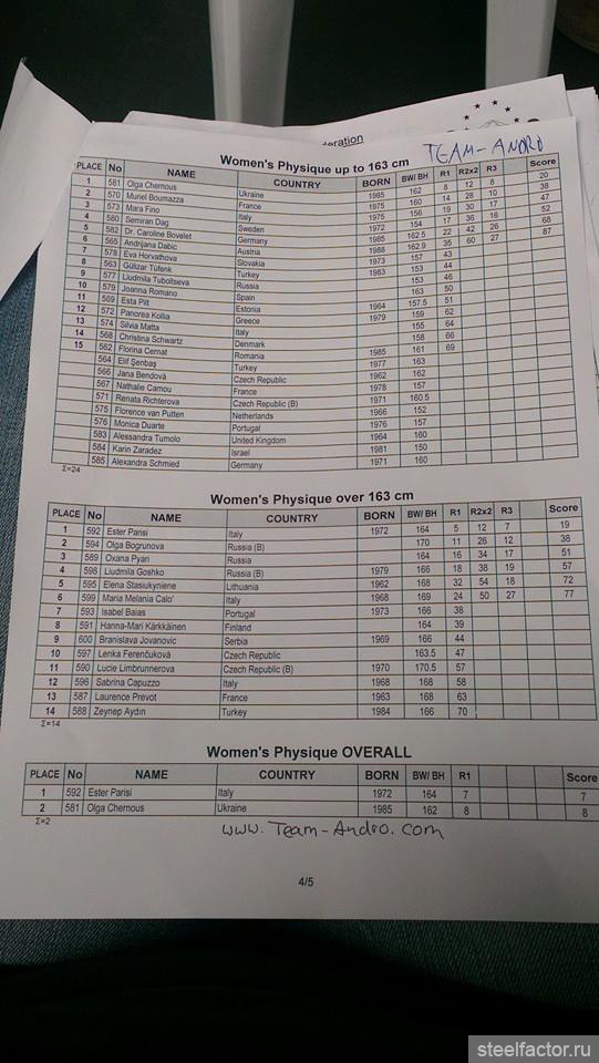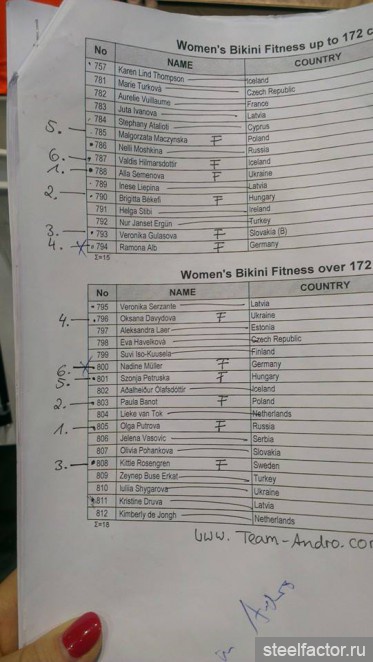 Ольга Путрова - 1 в бикини свыше 172, остальные ПОЛНЫЕ результаты для нашей сборной (ТОП-6) тут:
