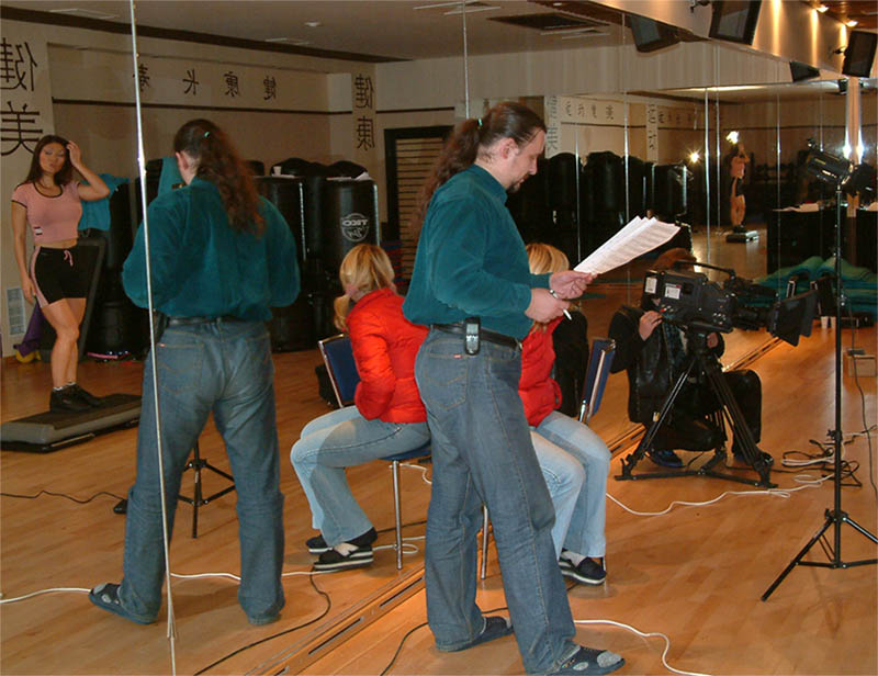 Замена! На этом месте была другая фотка. Наталья Ким с М. Дьяконовым и Д. Семенихиным на пятом Международном Конгрессе 'Планеты Фитнес' (Фото: А. Каманин; 2003 г):