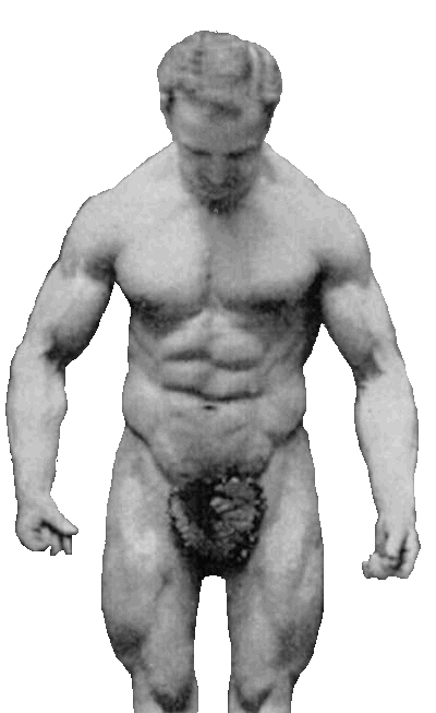 "His lighting was perfect and caused deep shadows under every prominent muscle layer.