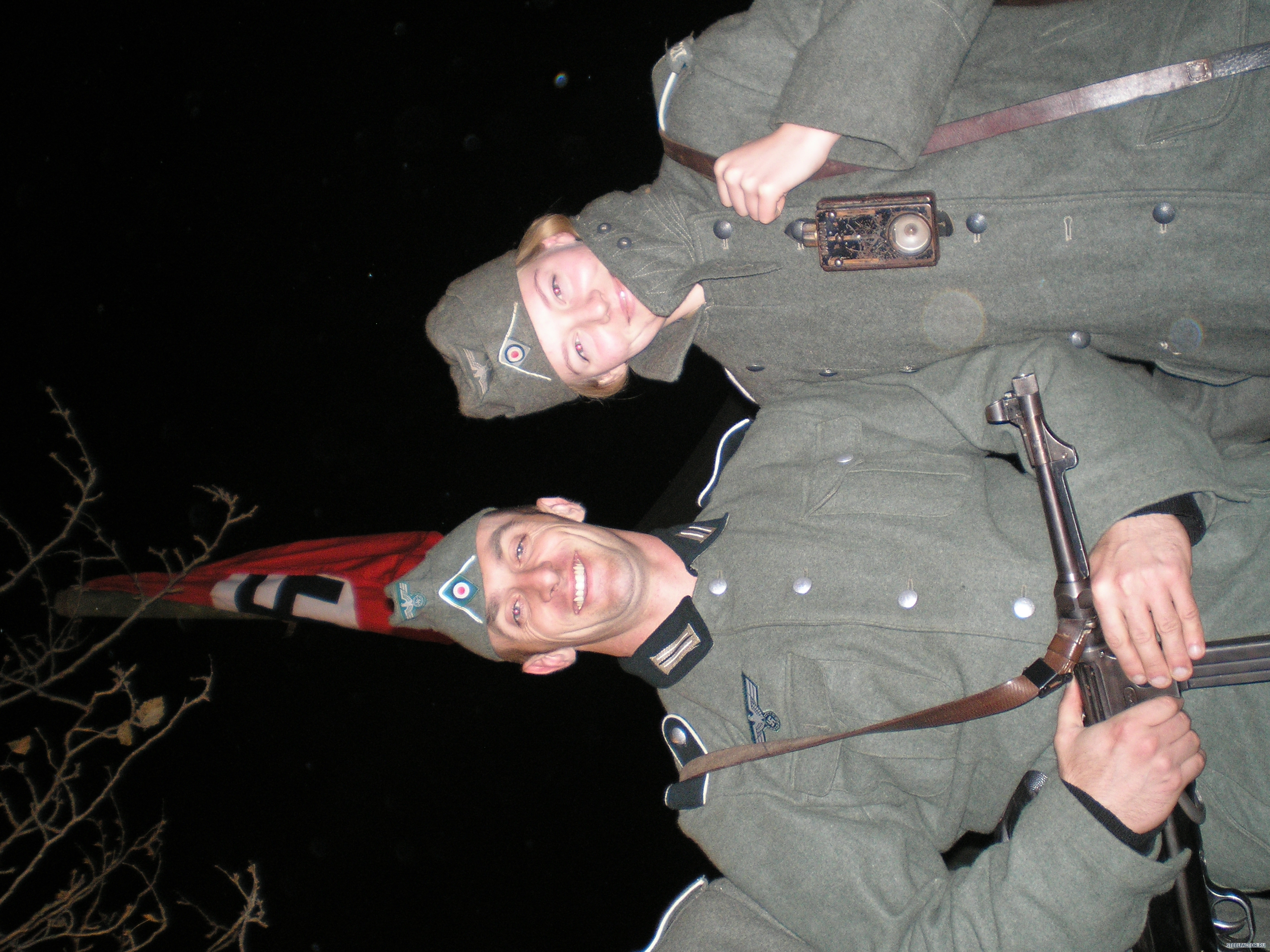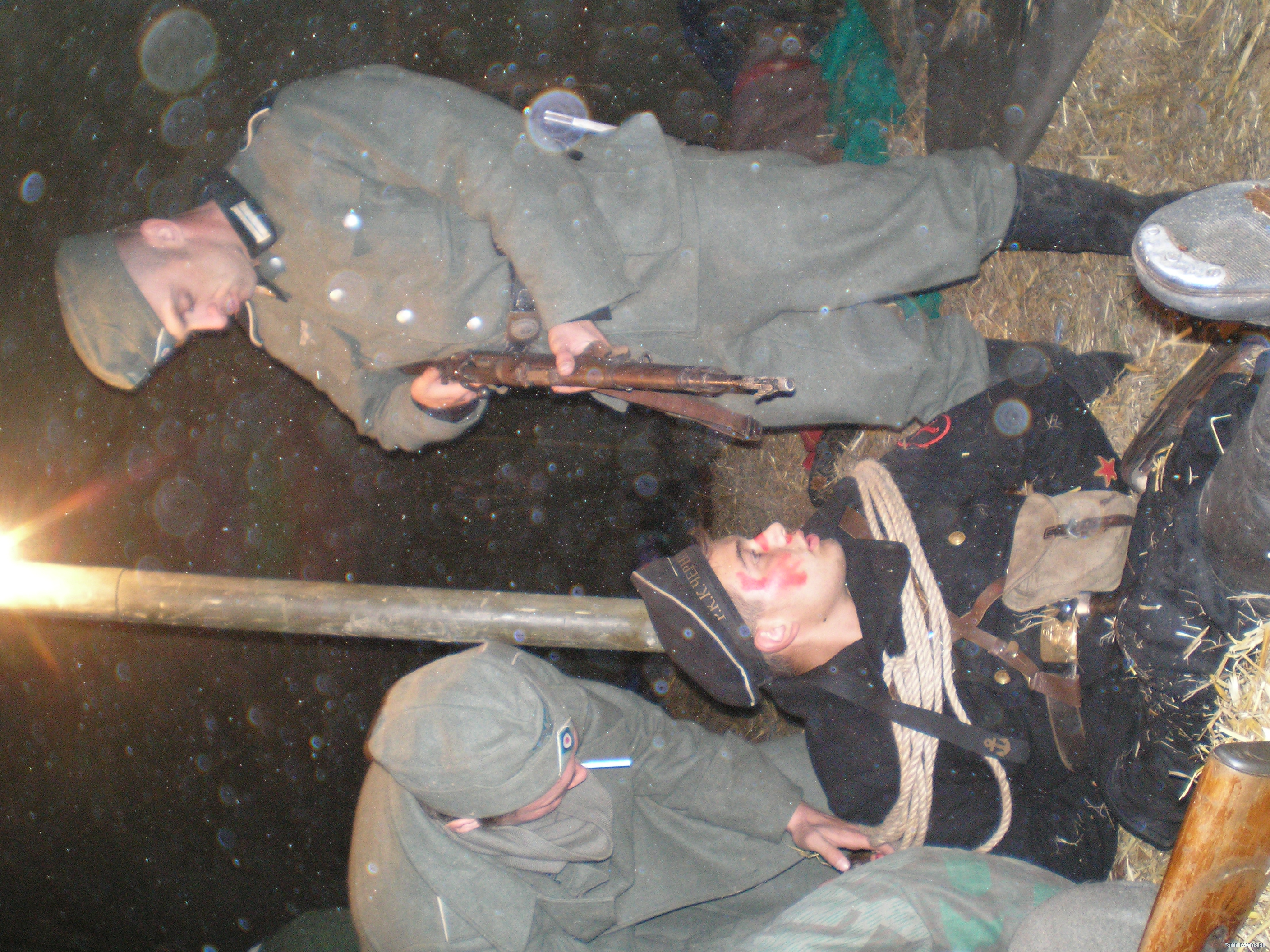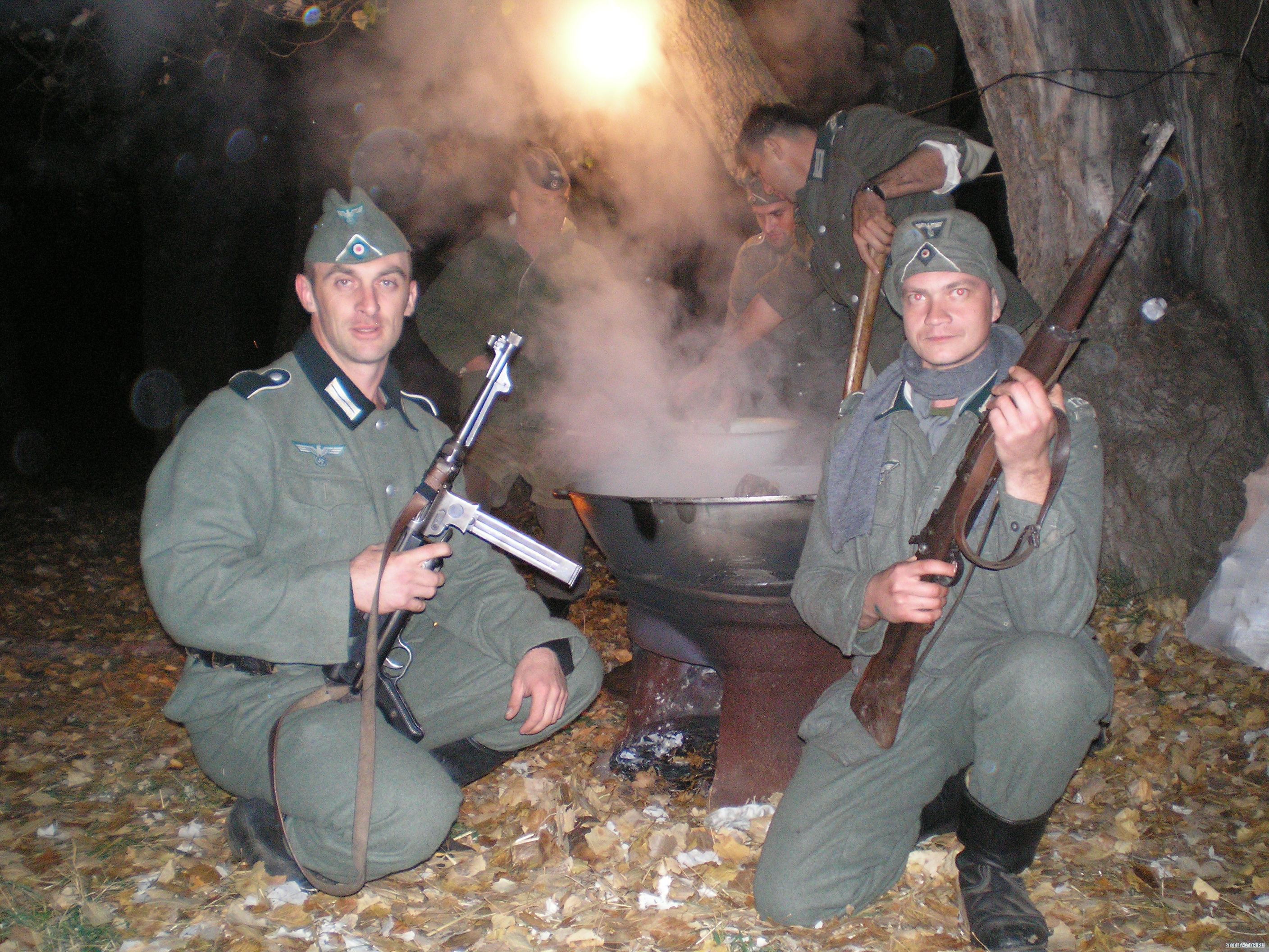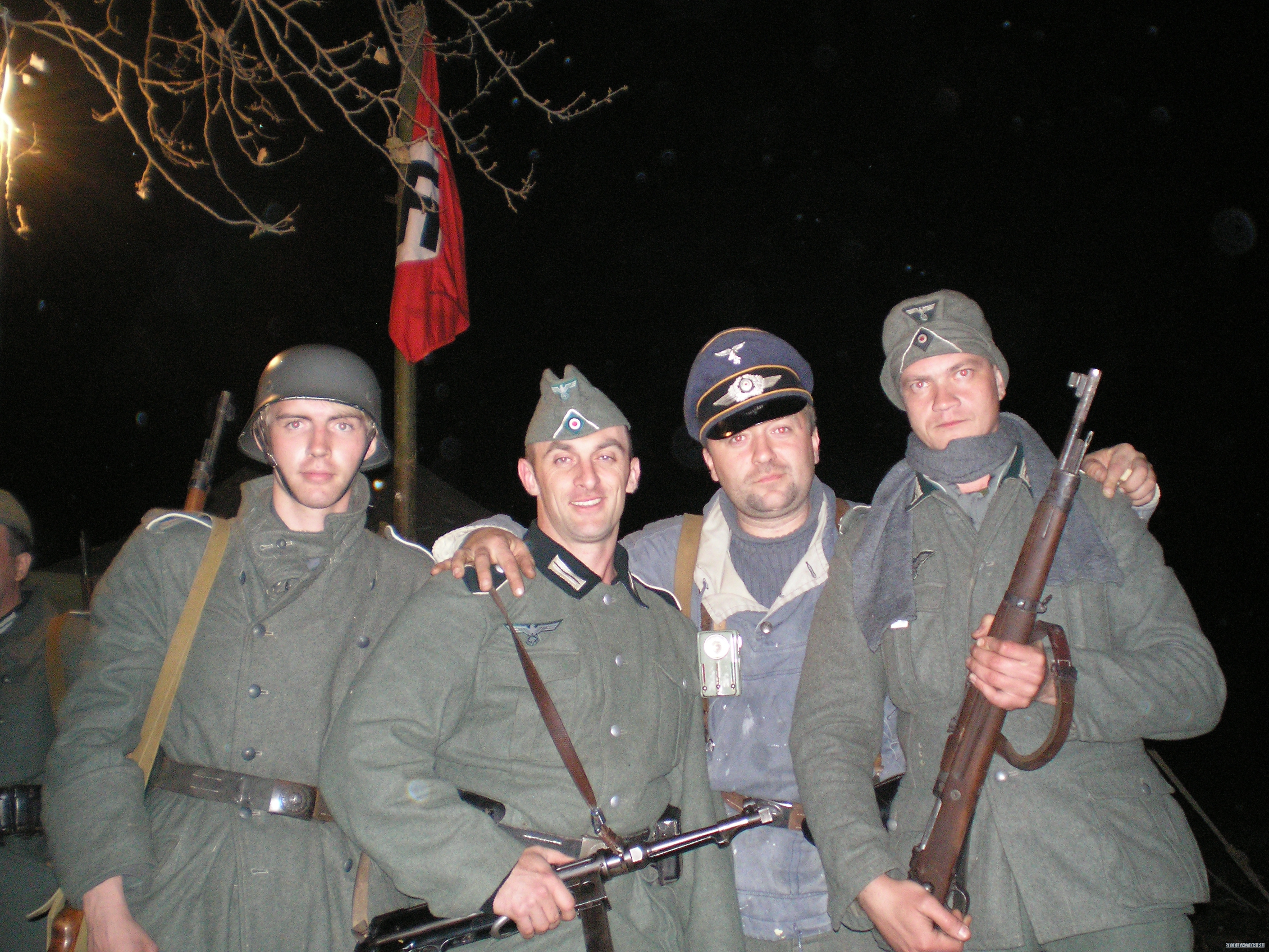 Forest_Dog Гражданские только на обезьянике-бой для зрителей.а остальное-поход.тактика.только для реконструкторов.Хотя на тактике в балаклаве-между лагерями русишей и вермахта притулилась группка обкуренных туристов.Они затаились в палаточке у родника и тихо сидели.А вот камрады рассказывали на тактике-на територрии генерал губернаторства-Виницкая область.пятеро парней зашли в село по форме.местные сначала радовались а потом вспомнили дедов.дело было на сельской дискотеке.на помощь подоспела вся рота и маршируя с песней на немецком с схп в руках-просто смяли два десятка пьяного сельского сброда в сточную канаву.