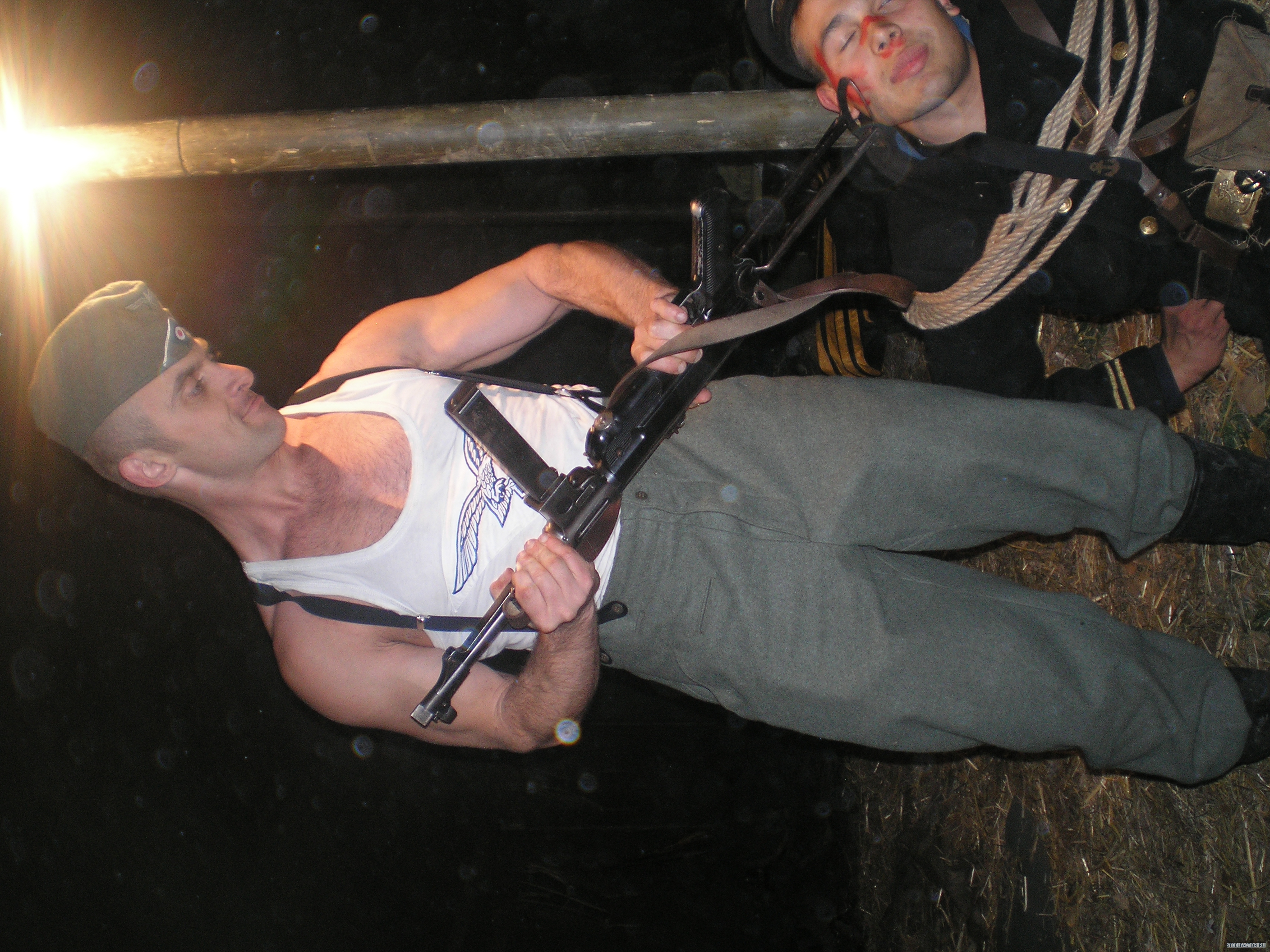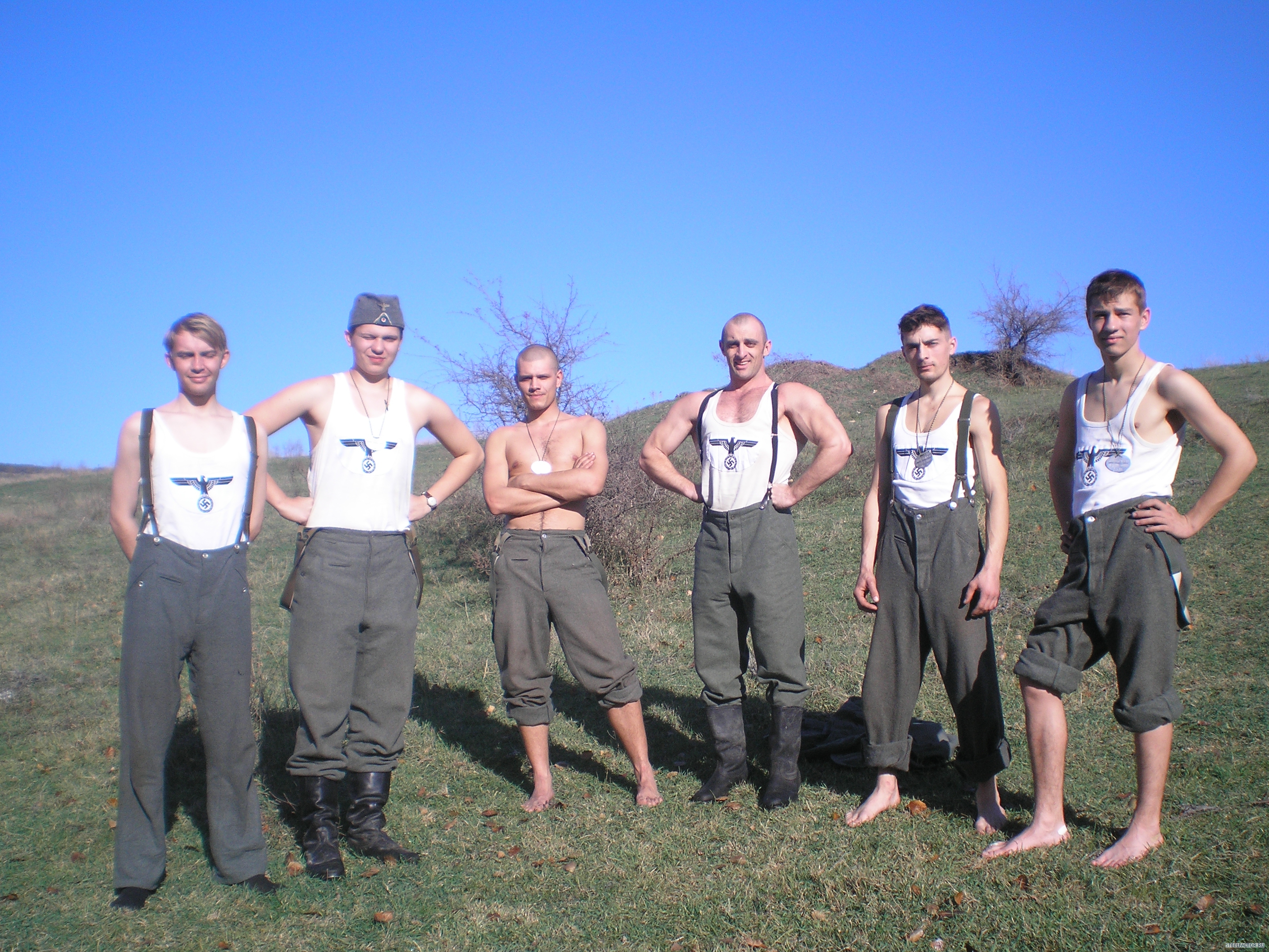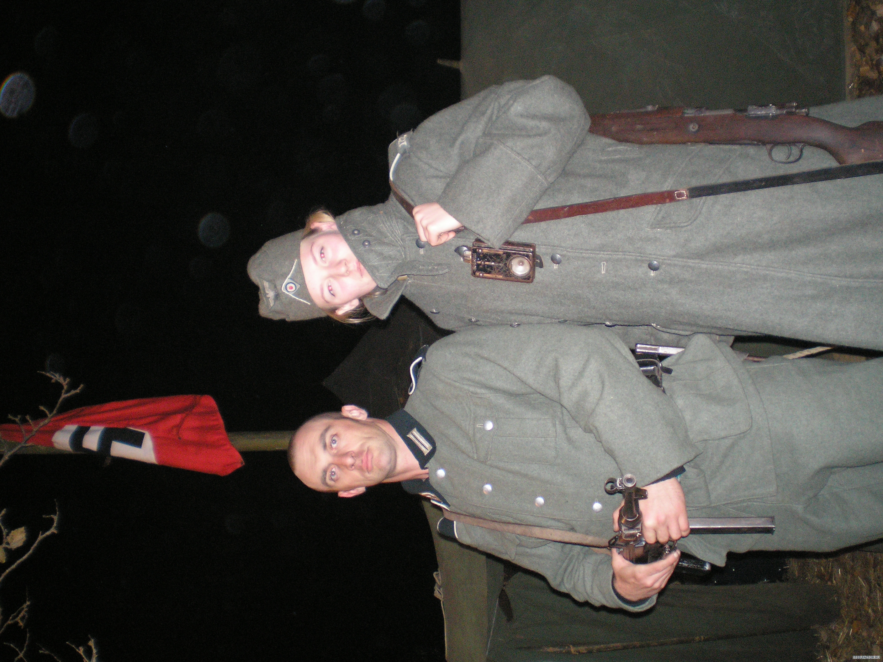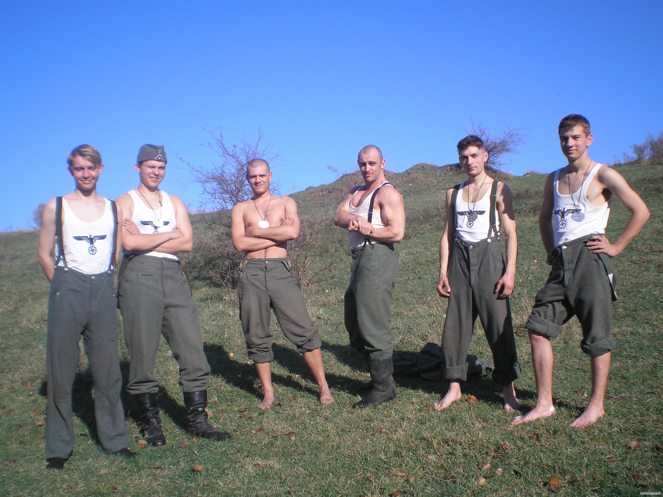Forest_Dog Гражданские только на обезьянике-бой для зрителей.а остальное-поход.тактика.только для реконструкторов.Хотя на тактике в балаклаве-между лагерями русишей и вермахта притулилась группка обкуренных туристов.Они затаились в палаточке у родника и тихо сидели.А вот камрады рассказывали на тактике-на територрии генерал губернаторства-Виницкая область.пятеро парней зашли в село по форме.местные сначала радовались а потом вспомнили дедов.дело было на сельской дискотеке.на помощь подоспела вся рота и маршируя с песней на немецком с схп в руках-просто смяли два десятка пьяного сельского сброда в сточную канаву.