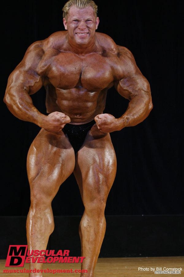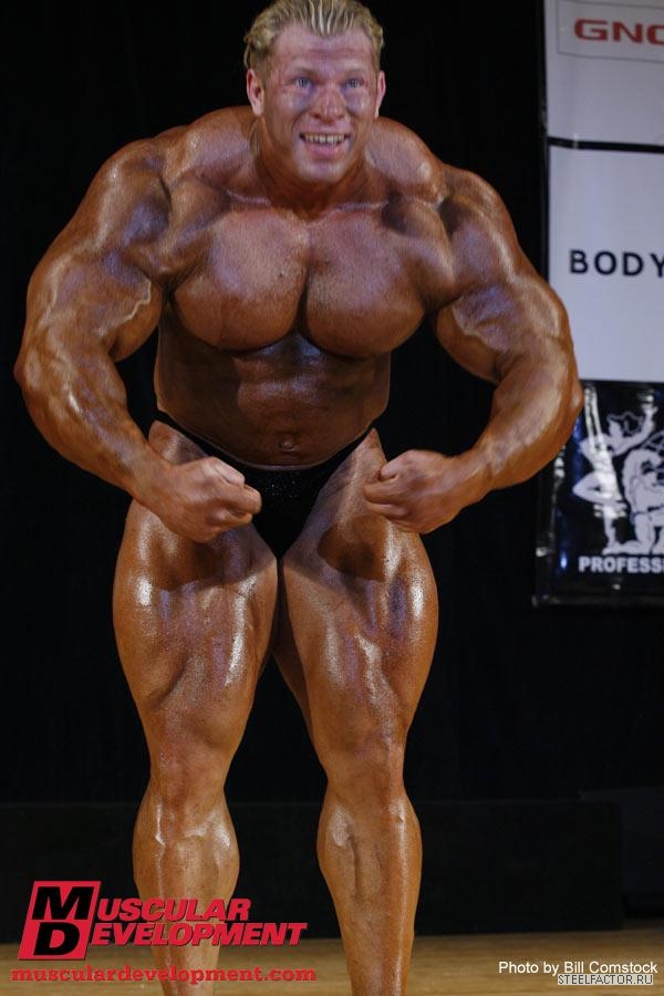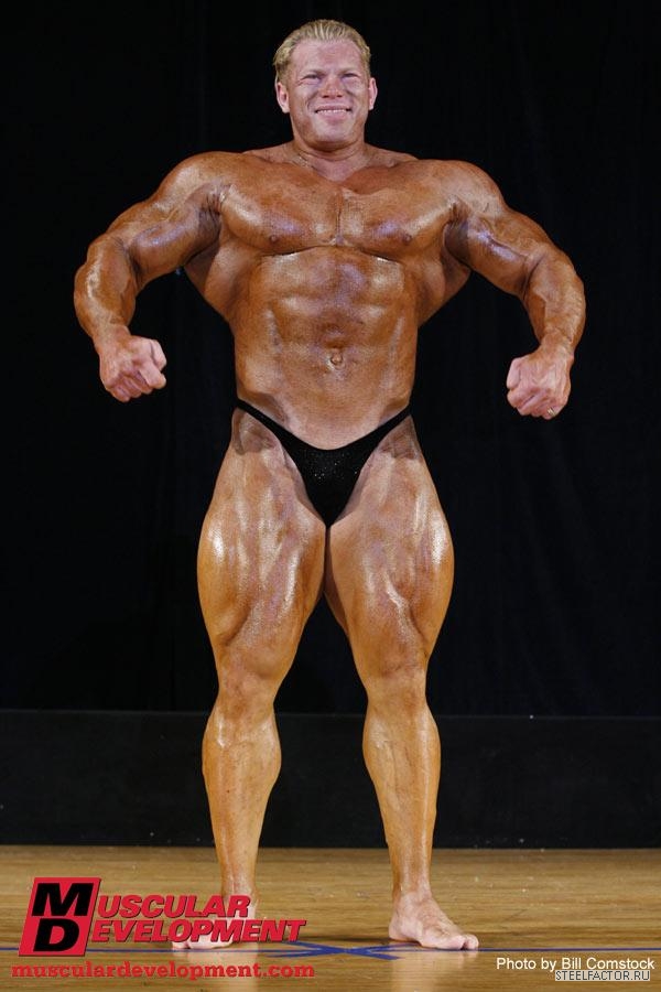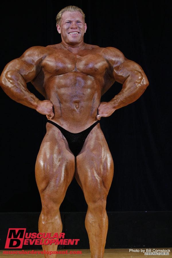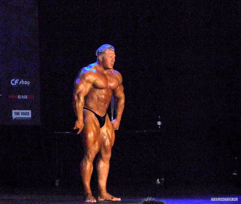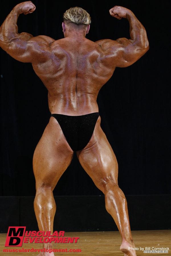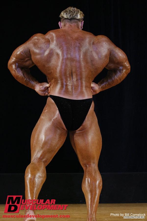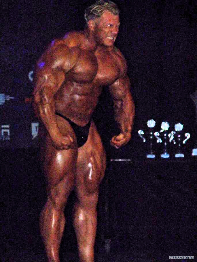 Минусы конечно имеются, но не пугающие, в смысле можно более или менее подправить. Спина отлично развита сверху, а низ......... как будто он никогда становую тягу не делал, именно такое впечатление. А так все супер. Костяк широченный, как у Рула, а талия масенькая, вот это наверное больше всего поражает, лично меня, это соотношение у него. На данный момент - он мне больше всех нравится.
