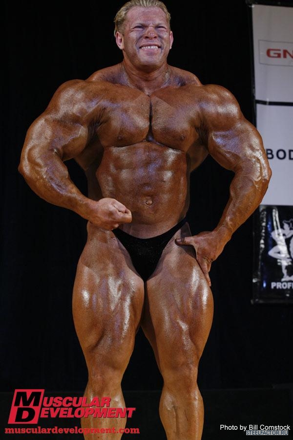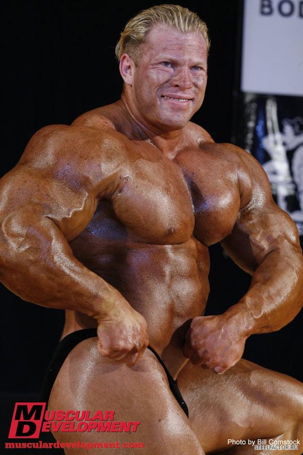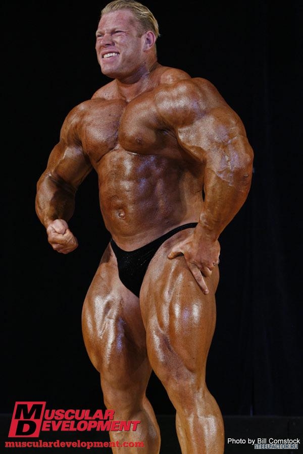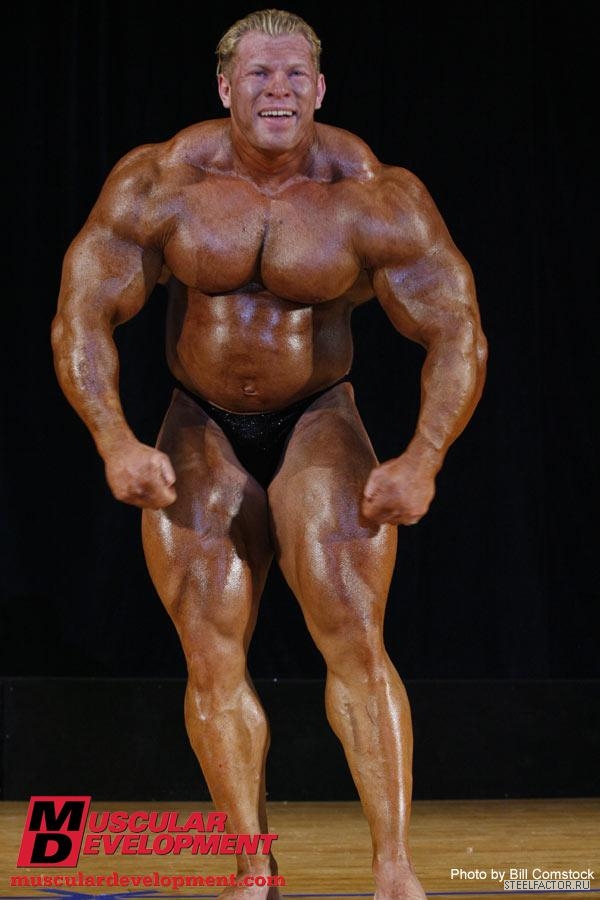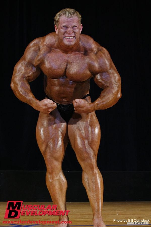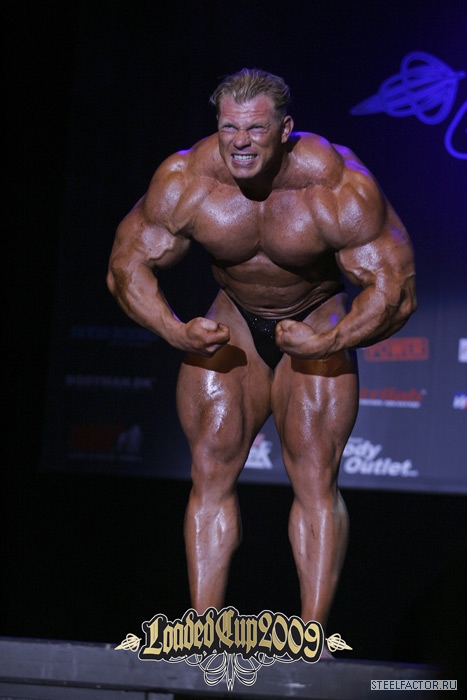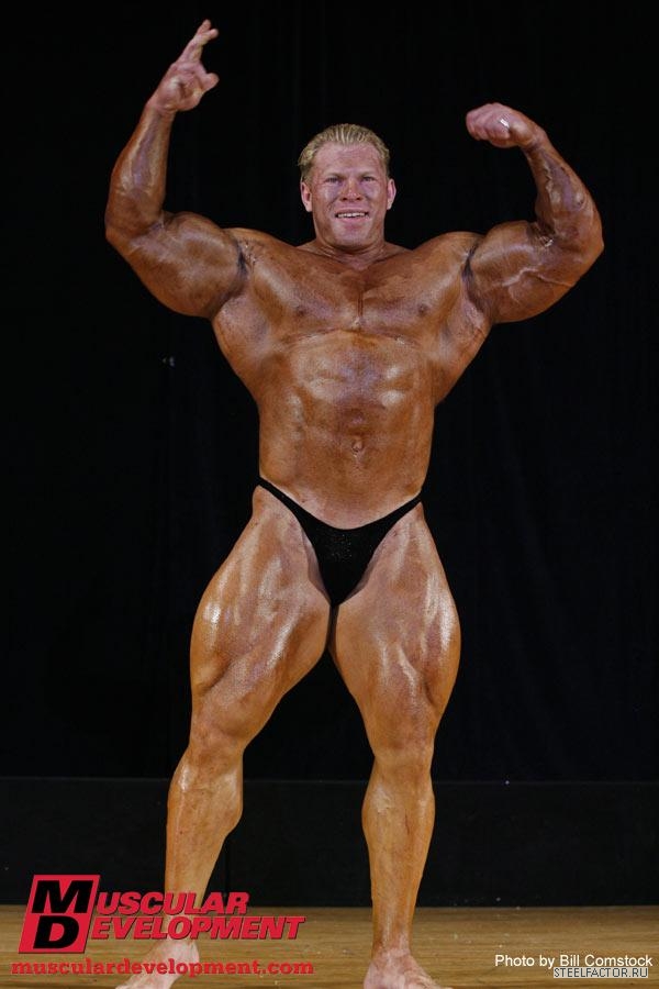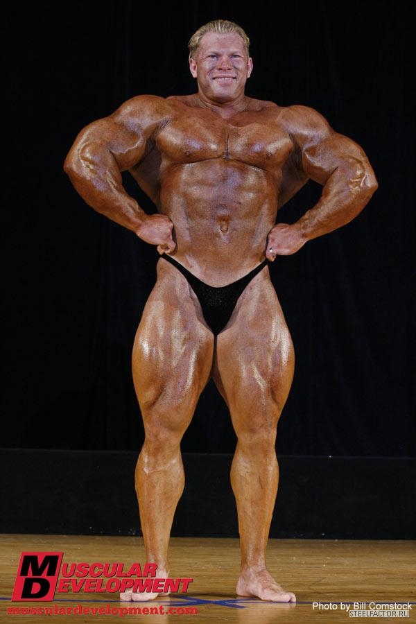 Минусы конечно имеются, но не пугающие, в смысле можно более или менее подправить. Спина отлично развита сверху, а низ......... как будто он никогда становую тягу не делал, именно такое впечатление. А так все супер. Костяк широченный, как у Рула, а талия масенькая, вот это наверное больше всего поражает, лично меня, это соотношение у него. На данный момент - он мне больше всех нравится.