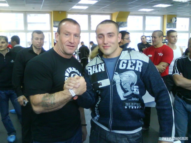 Осень 2009, зал world gym ,Екатеринбург,здоровый лысый дядька,обладающий британским акцентом и такой же фамилией, пристал ко мне с просьбой о фото,ну я не смог отказать,из "лысой" солидарности...)))