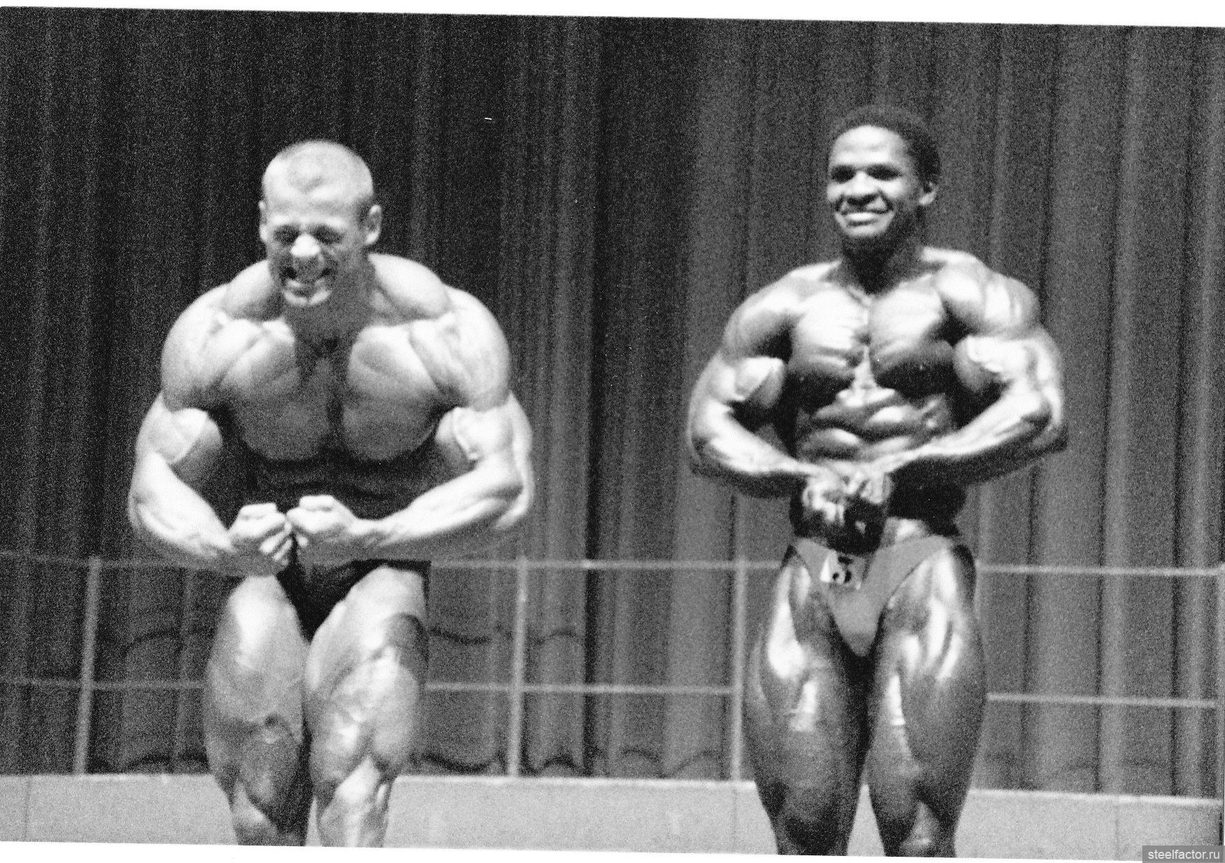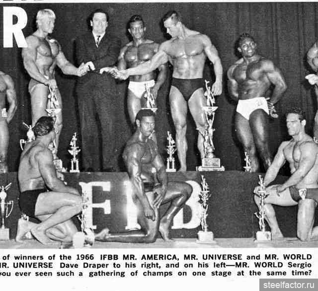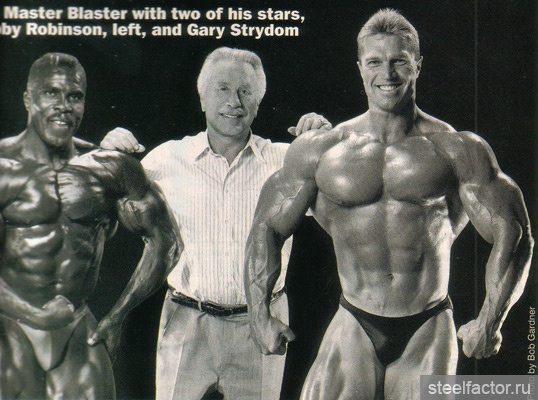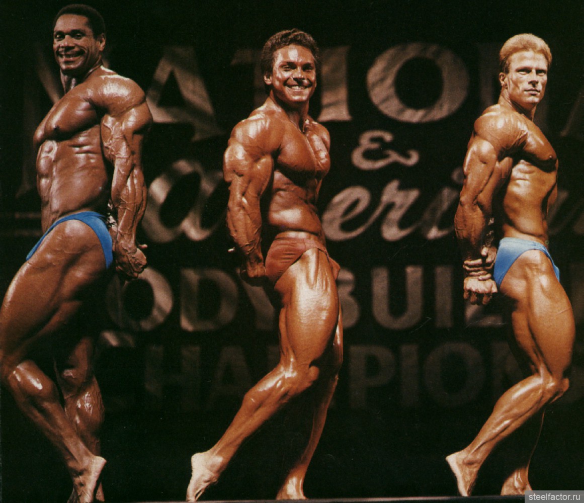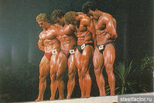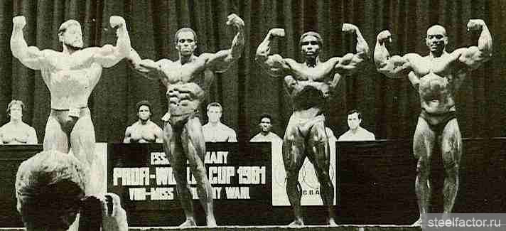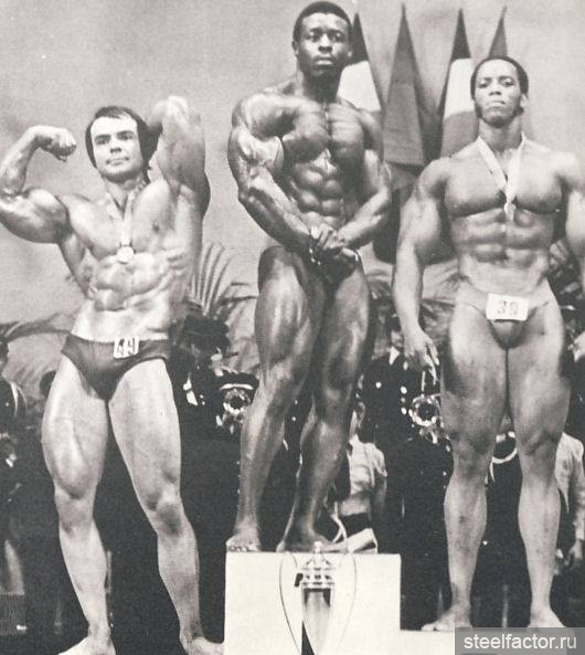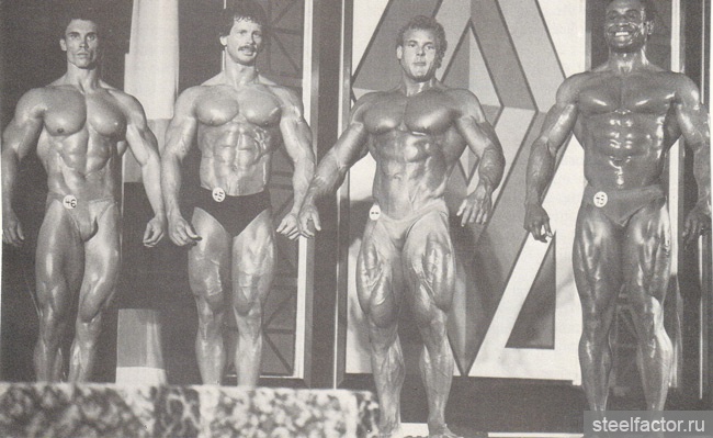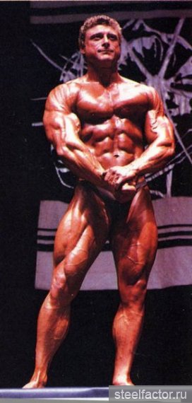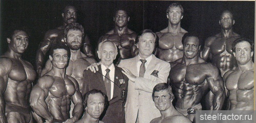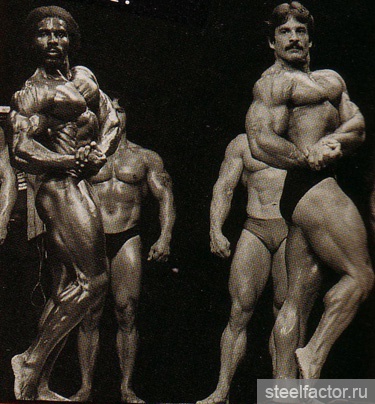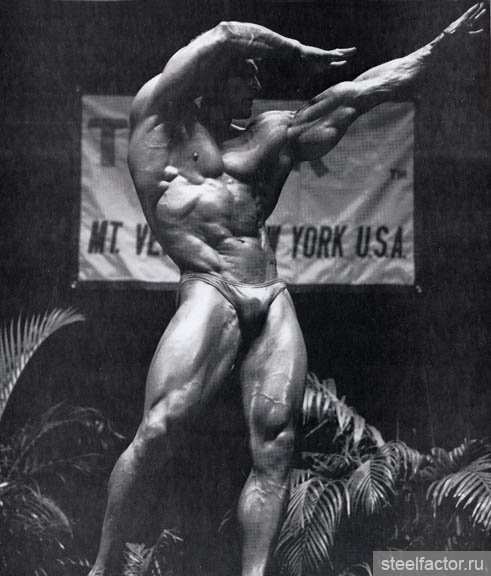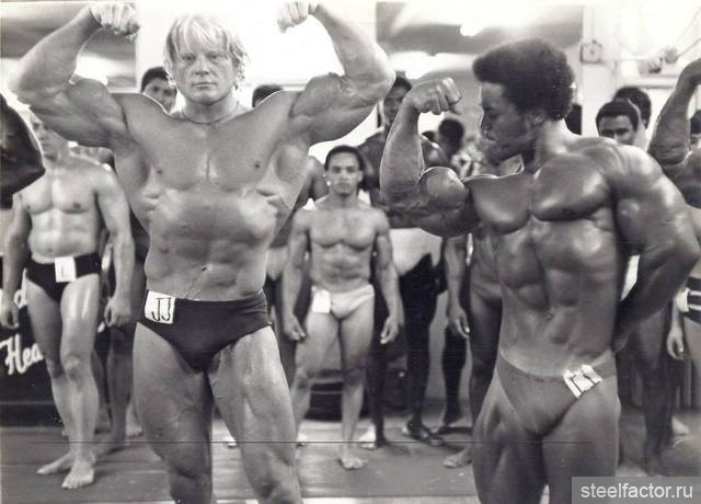Они тренировались вместе как бы в одной упряжке. Подходы следовали за подходами при минимальном отдыхе и до тех пор, «пока я не становился сначала красным, а потом синим... Я никогда не видел, чтобы Арнольд массированно применял какие-либо препараты, за исключением витаминов С и В-комплекс...» Кстати, мне, автору данного очерка, Арнольд при встрече в Москве говорил, не таясь, что пробовал различные анаболики и отказался навсегда. Правильная тренировка при разумном питании — вот основа мышечной кладки...