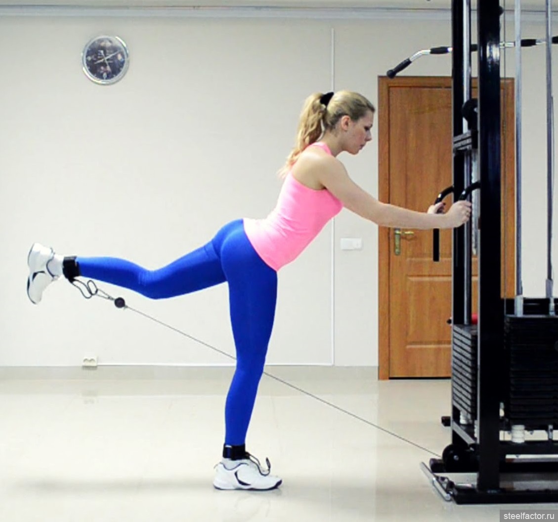 Это вот такое упражнение. Раньше делала с прямой ногой, а сейчас с согнутой в колене и максимально вверх поднимаю что бы задействовать верхнюю часть ягодичной.