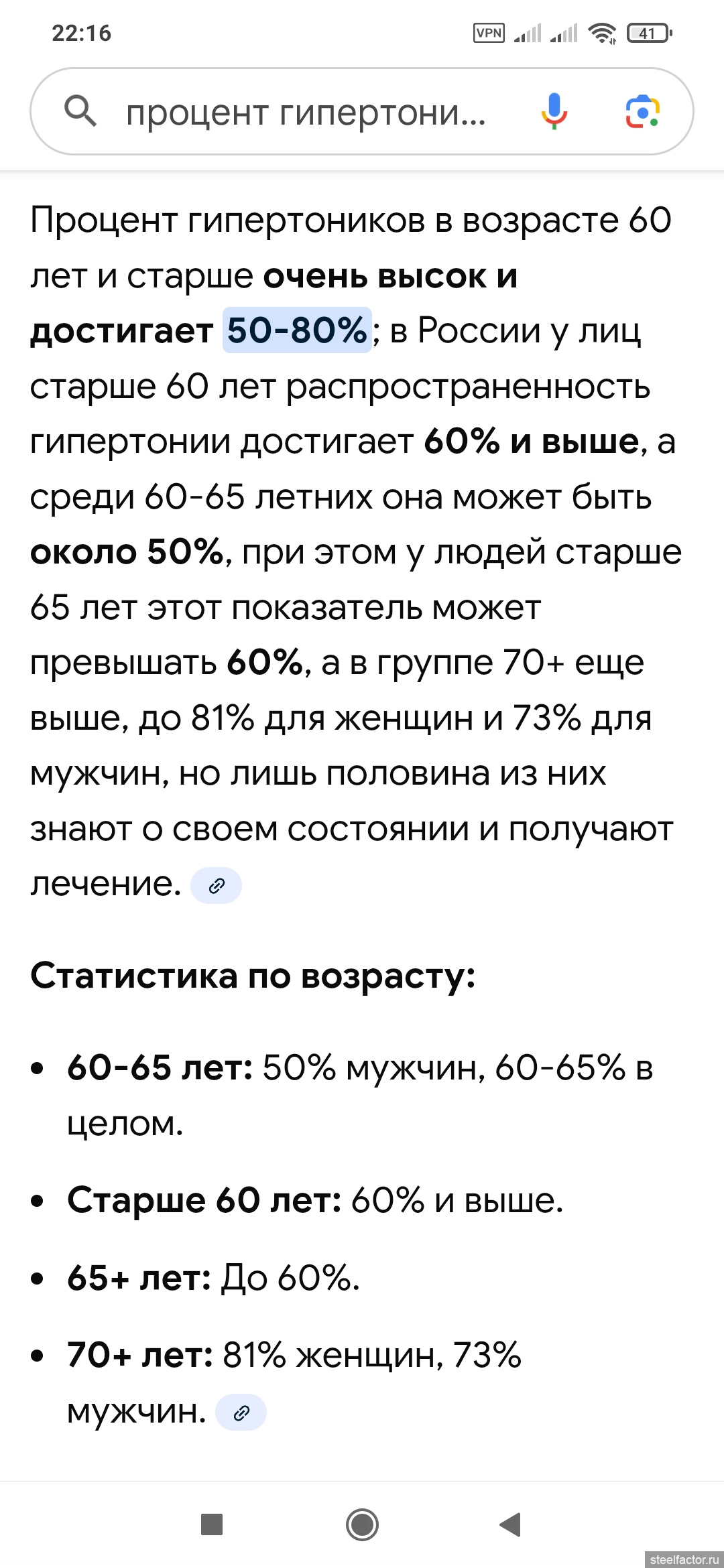 Да, это я не удачно хотел к Евгению отписать, но чтобы понятно было что разговор о давлении, то еще твой пост привел из вашего диалога. У меня у матери было высокое давление и она постоянно принимала лекарства, у отца не знаю он ничего не мерил и все болезни водкой лечил, но прожил меньше матери. У меня тоже давление сперва начало формироваться и расти вверх и в принципе выросло до 140 верхнее на постоянку еще к 50 годам. Потом у меня случился тромбоз, который я лечил 20 дневным голодание во время которого давление снижалось снижалось и упало до 90\60 к 18 дню голодания. Врачиха со страху закрыла мне больничный т.к. до этого уже требовала прекратить голодание. У меня и вес стал 68 кг после 88 кг и это все было на ее глазах. Сказала что я не сегодня завтра двину кони и она за меня отвечать не хочет. До этого брала расписку, что я сам дурак и занимаюсь самолечением без ее разрешения. Ну и потом давление уже вот 20 лет почему назад не вернулось, до 110 доросло, ну может иногда 120 я не мониторю. Но когда мерил то 110\70