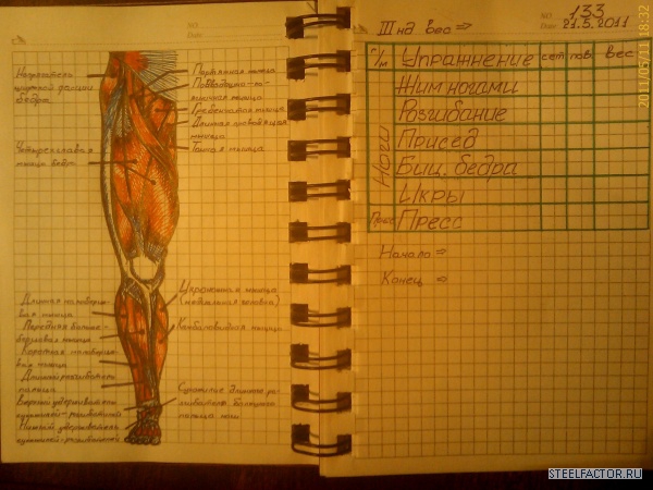 Всё делал 5х5 кроме голени - 3х15 и подтягиваний - 3 х max