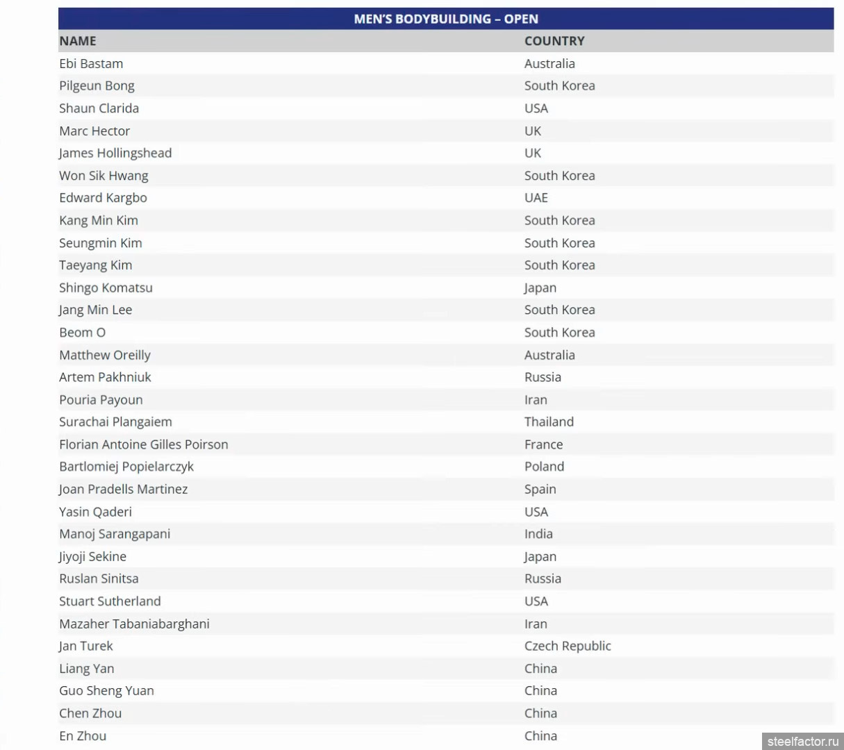 Полный список участников. От наших заявлены Артем Пахнюк(2-3 фото, 2 недели назад) и Руслан Синица(4-5 фото, вчера)