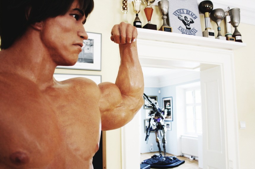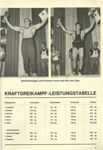 Training für die Europameisterschaft im Powerlifting mit Arnold Schwarzenegger. Arnold bereitet sich auf die Mr. Universum Wahl vor