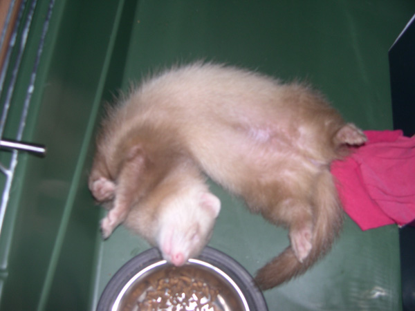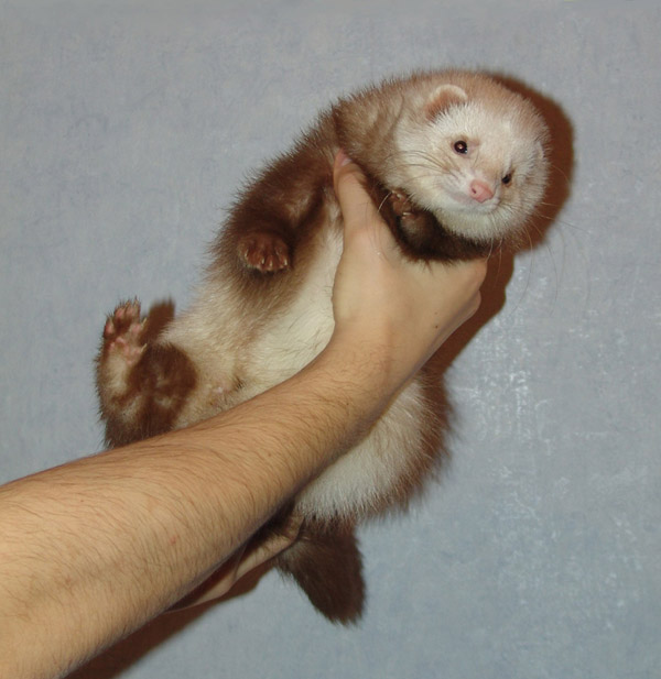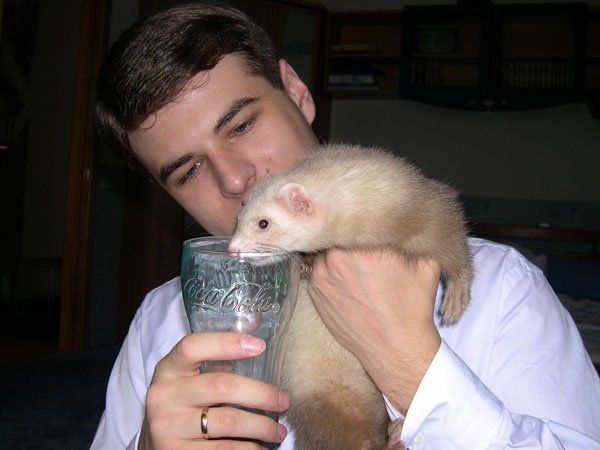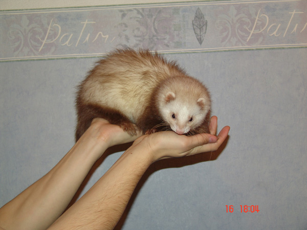 А это мое проклятие - хорек Алукард. Нахальный, любопытный, прожорливый, неуемный, и постоянно борется со мной за доминирование в семье) Но как на морду посмотришь, сразу прощаешь все, хотя иногда, когда он начинает куролесить по ночам, хочеться придушить...