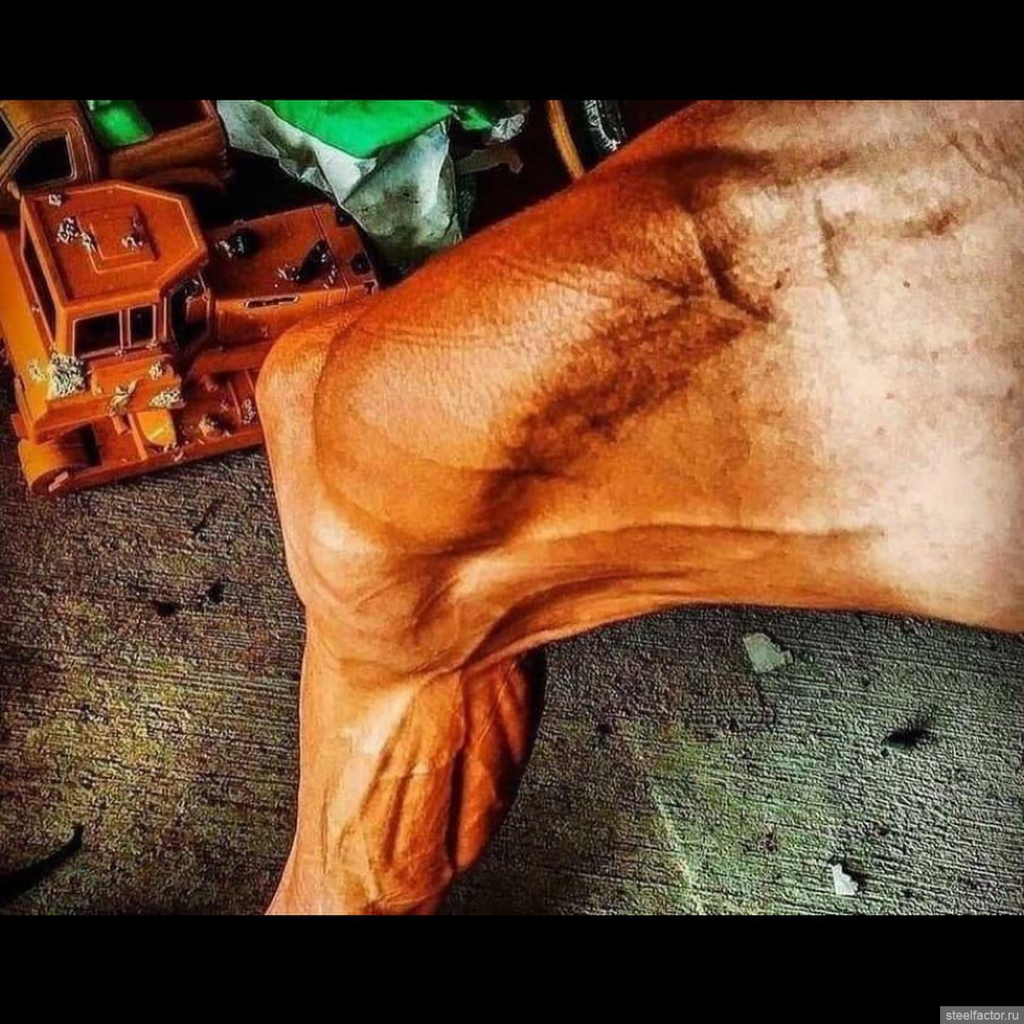 На других видео в спине ничего инородного не заметно. Возможно тут просто из-за сильного пампа такое впечатление