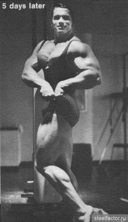 Сам Арнольд писал, что во время выступления в Южной Африке он на бицепс поднимал штангу весом 125 кг на 5 повторений пользуясь "читтингом".