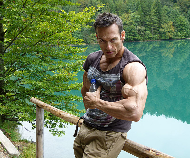 Mark Antonek at forty-six and recently diagnosed with Parkinson's disease continues on as a professional bodybuilder preparing for his next show the 2012 Europa Battle of Champions. Over two days Mark shared with Muscular Development fans; in video #1 some of his training style at Tampa, Florida's downtown Powerhouse gym and in video #2 some extracurricular activities in the woods north of town wrangling alligators.