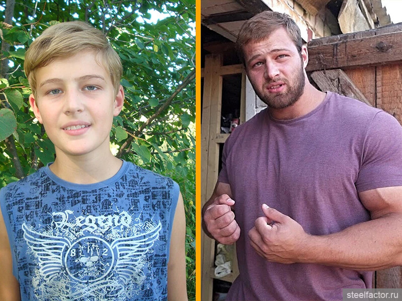 а вот то что получилось из него - это однозначно генетически заложено и отклик от фармы и крепкость суставно-связочного аппарата и способность организма переваривать и усваивать колоссальное количество пищи. Ведь заниматься они начали вместе с другом -Саней, но результат совершенно разный, хотя на старте Андрей говорил что Саша выглядел гораздо более мускулистым чем он (тут конечно есть один нюанс, Андрей и сейчас себя не считает большим... это бигорексия -ему всегда кажется что он чуточку меньше чем другие