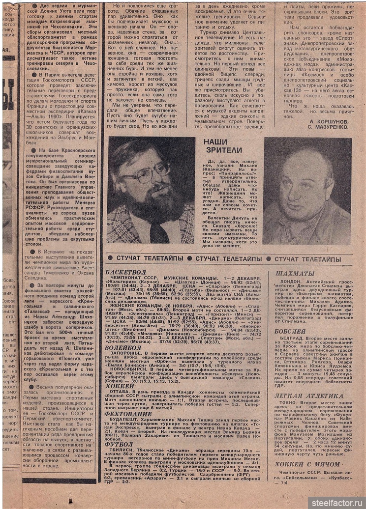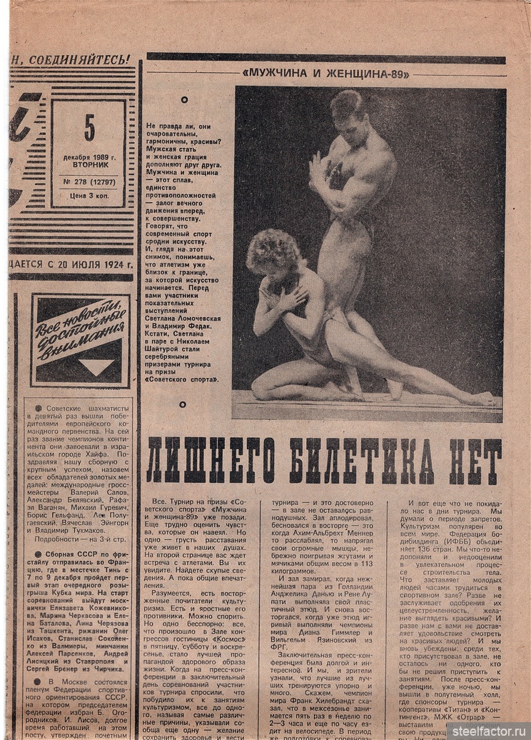 Для затравочки "Советский спорт" со своим легендарным турниром "Мужчина и Женщина-89":