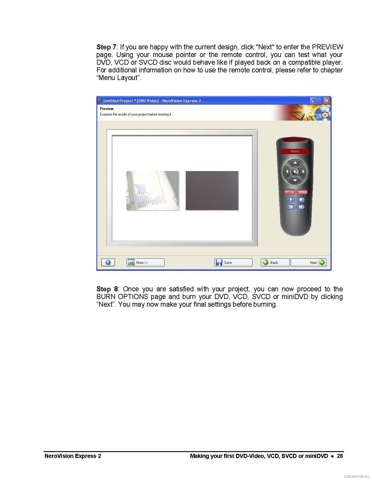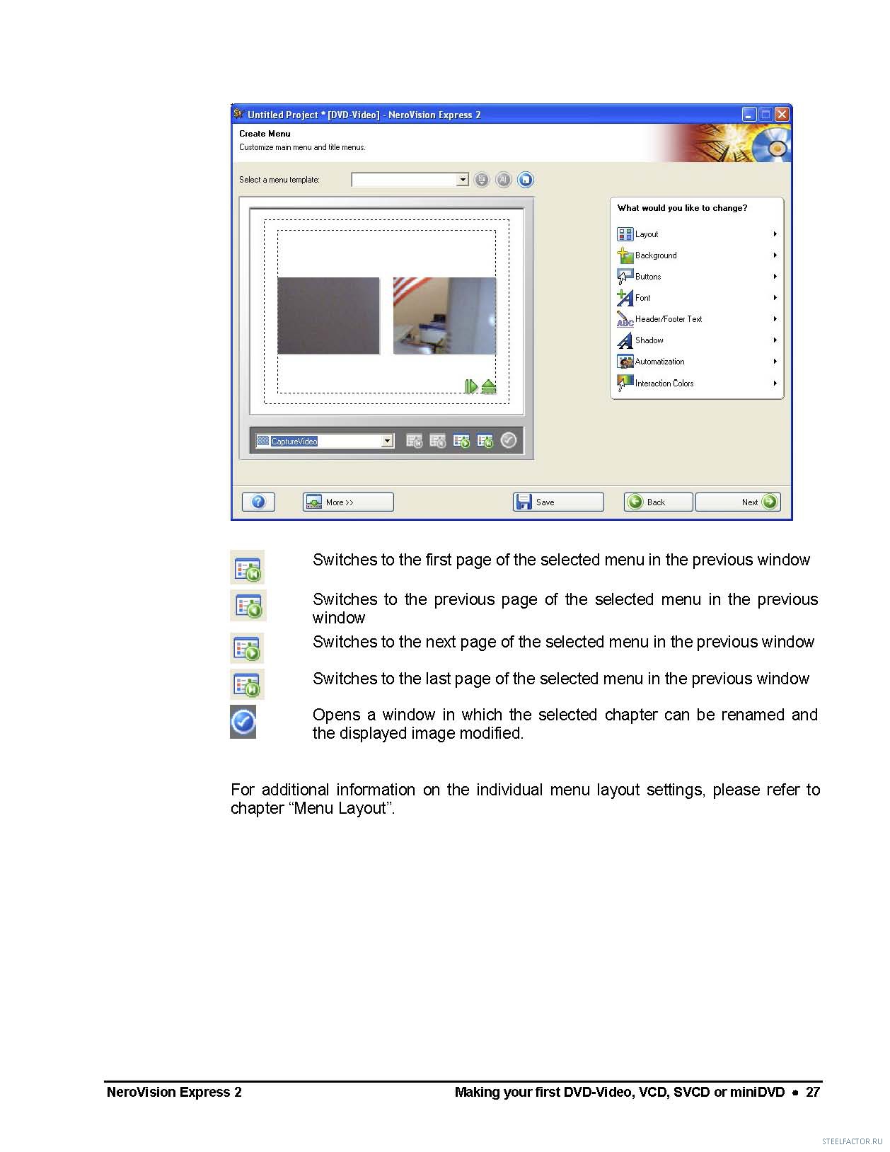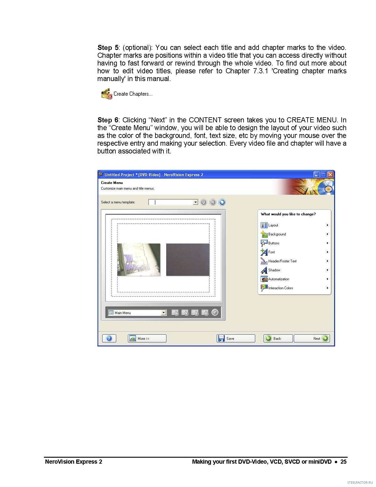 Делал это и в 6 версии, без менюшки. Есть спец. программки которые делают это лучше нерки. А с глюками последних версий часто обращаются, то двуслойную болванку запорят, то еще какие глюки.Можно кодировать с помощью Any Video Converter из AVI в формат DVD video PAL и писать просто как обычный файлы через неро..