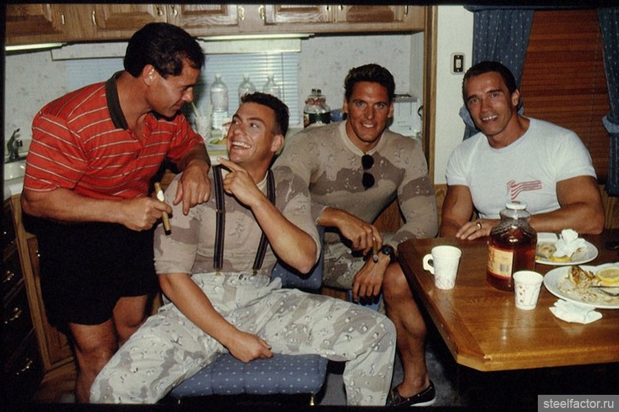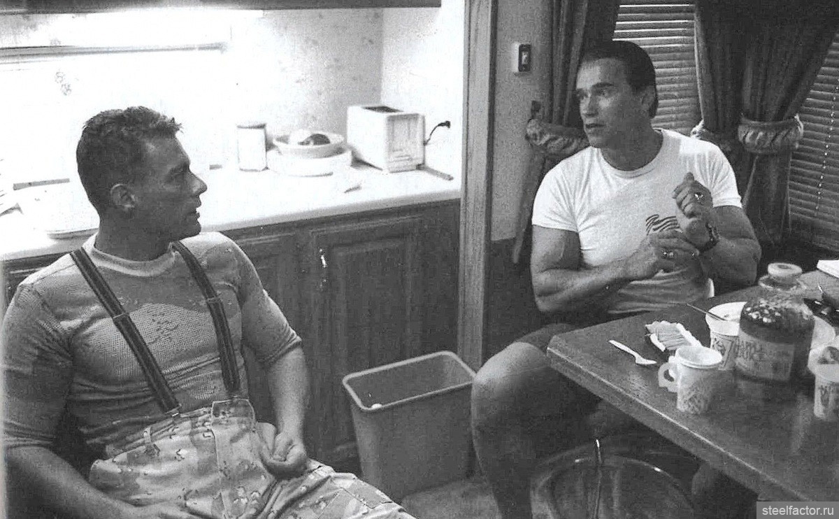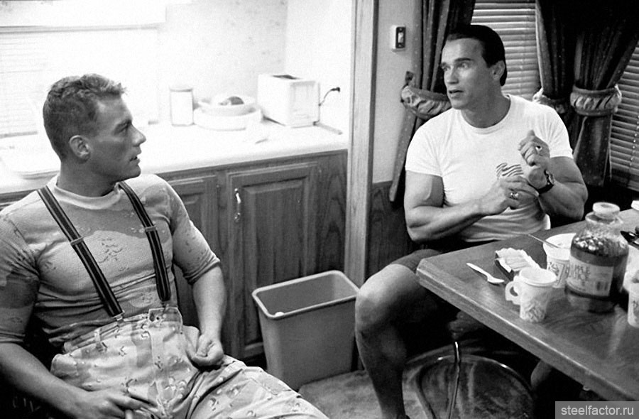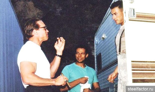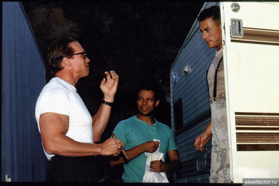 О неприятной истории пятилетней давности, когда молодого и никому неизвестного Ван Дамма вышвырнули со съемок "Хищника" (где Арнольд играл главную роль, а Ван Дамм должен был играть Хищника) стороны предпочли не вспоминать