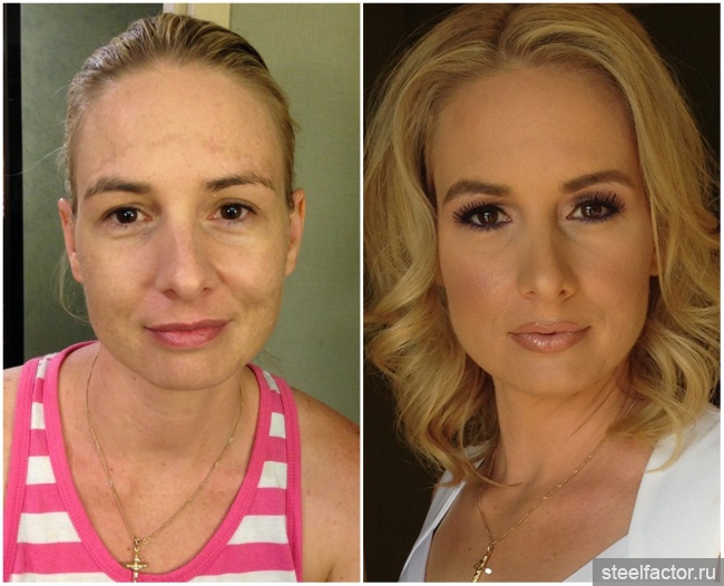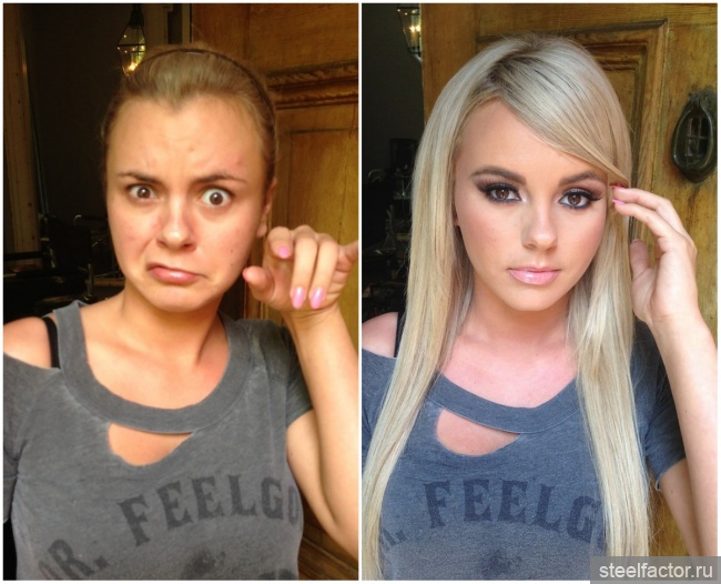 Одна половина до макияжа , а вторая после макияжа.