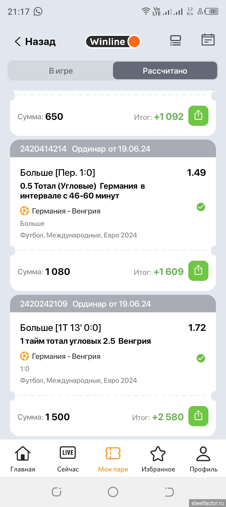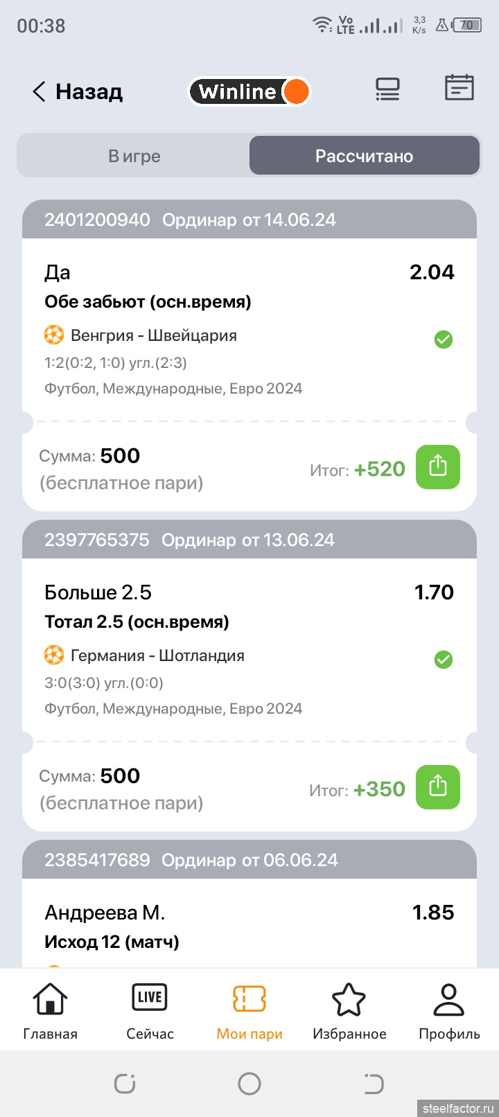 Специально для ЧЕ по футболу для продвинутых бесплатно фрибеты рандомно по 50, 500 и 1000. Два дня работало. Выпало по 500. Угадал 2 из 2. На 3-й день не дают. Печалька)