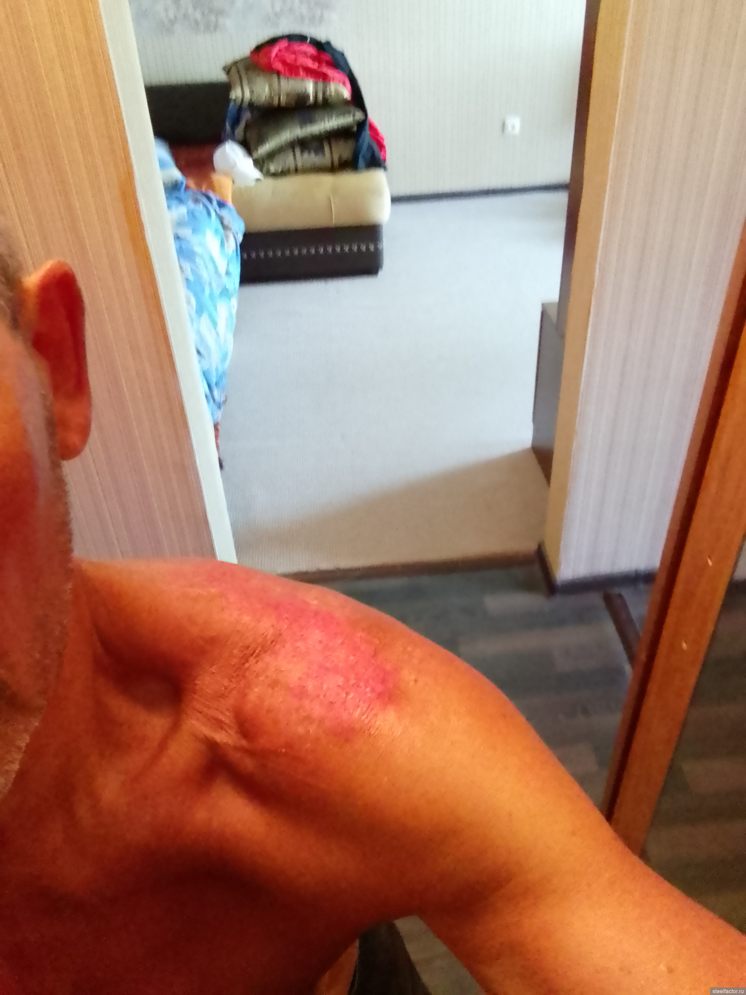 Первый минус - сгорел до пузырьков на плечах.