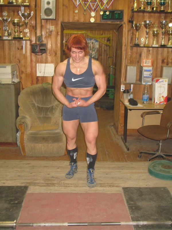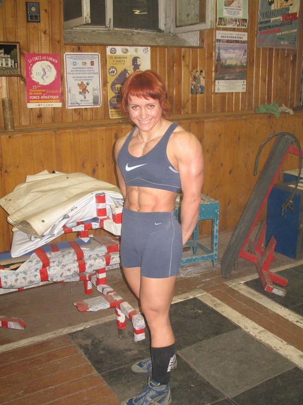 По поводу моих теоретичсеких перспектив в бодибилдинге, выложу на ваш суд пару фоток (тоже сегодняшних). Через месяц буду выступать на Кубке России, поэтому тренировки сейчас исключительно лифтерские. Диету не соблюдаю, т.е. определенную, конечно же, соблюдаю, но не сушусь, а наоборот пытаюсь набрать. Вешу сейчас 69, а выступать буду скорей всего в родной 75. Ну и позировать я тоже не умею, напряглась, как сумела