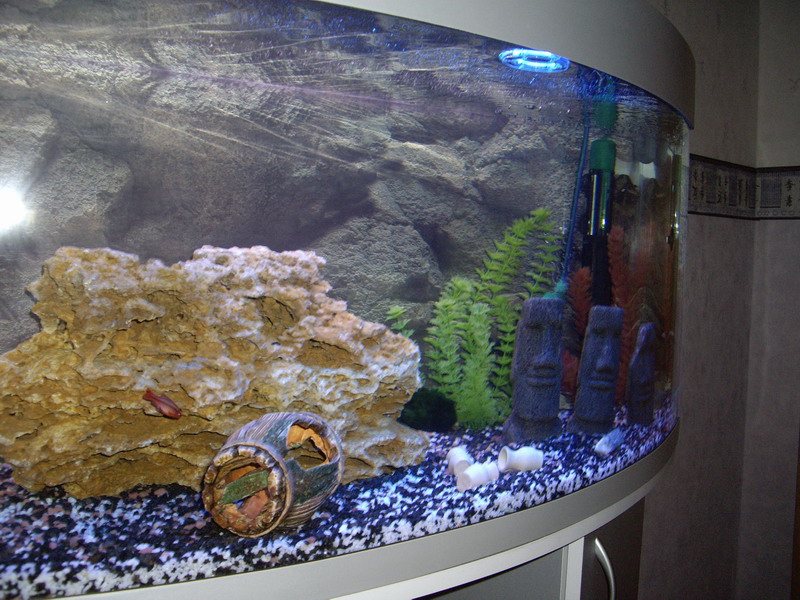 На самом деле, в тумбе - только фильтр. Такая коробочка, размером с 2-х литровую банку, от неё - две трубки в аквариум. И всё. В принципе, всё гораздо проще, чем кажется с первого взгляда. А удовольствия - море!