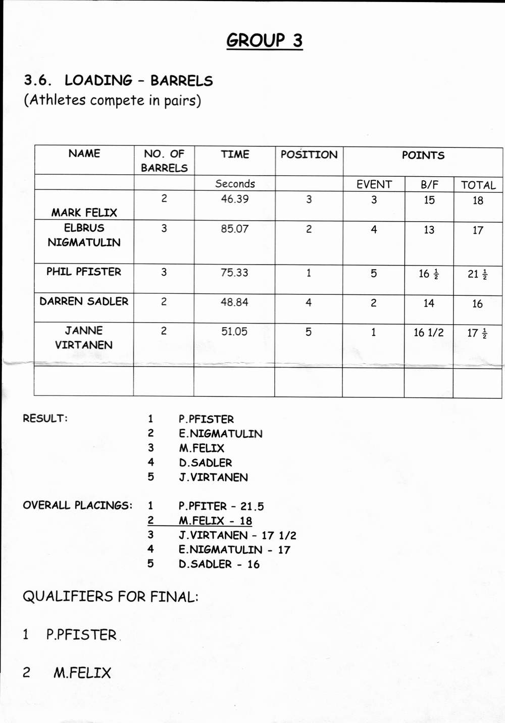 6 Phil Pfister USA 82.5 7 Vidas Blekaitis Lithuania 81.5