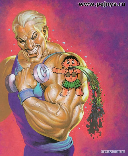 На веса мы в те времена лезли постоянно,главным достижением был огромный жим лежа,жим гантелей в то время практически никто не делал,но повышали тогда веса не в коем случае не в ущерб технике,любимый режим в те времена довольно силовой-6 по 6-это считалось лучшим для массы и силы которую развивали одновременно,в моем клубе уже в 1987 году жали по 200 кг несколько человек,троим из них было всего 17 лет,был такой принцип-настоящий культурист делает базу большим весом,а изолирующие упражнения-легким,например парни которые жали по 200 кг,разводку в стороны делали весом не более-10-12 кг,но при этом это была очень чистая и технически правильная разводка,а не как сейчас новички МАШУТ-15-20 кг гантелями-ручками крючками и помогпают всем телом,а в базе не могут поднять ничего.Насчет небольших весов я писал описывая Литовскую систему,но там был очень огромный обьем тренировок и отдых не более-30 секунд даже при работе на массу,так что наши культуристы и Литовцы качались по разному,я и мои ученики чередовали тренировки по этим системам.Могу сказать точно,что если бы кто то в зале сделал в то время тягу штангу в наклоне по Ятсу,то есть почти выпрямившись,то на него бы посмотрели как на сумасшедшего,так пытаясь поднять больший вес делали только новички,но их тут же поправляли.Обьединяло все наши школы то,что качались по 5-6 раз в неделю,каждую МГ качали не меньше двух раз в неделю,а порою и три раза по 20-30 подходов,действительно насчет перетренированости никто и не заикался-пахали бешенно,но и результаты были отличные,набор массы с животом и жиром считался позорным и все даже на массе были довольно стройные,рельефные но при этом огромные,везде в качалках были боксерские мешки и после тренировки отрабатывали удары,так что мышцы у большинства качков были функциональные,время было боевое и функциональность мышц приходилось применять в уличных драках,которые в те времена были постоянно.