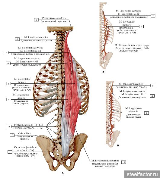 Длиннейшие мышцы спины + подвздошно-реберные. Вот тут лучше видно.