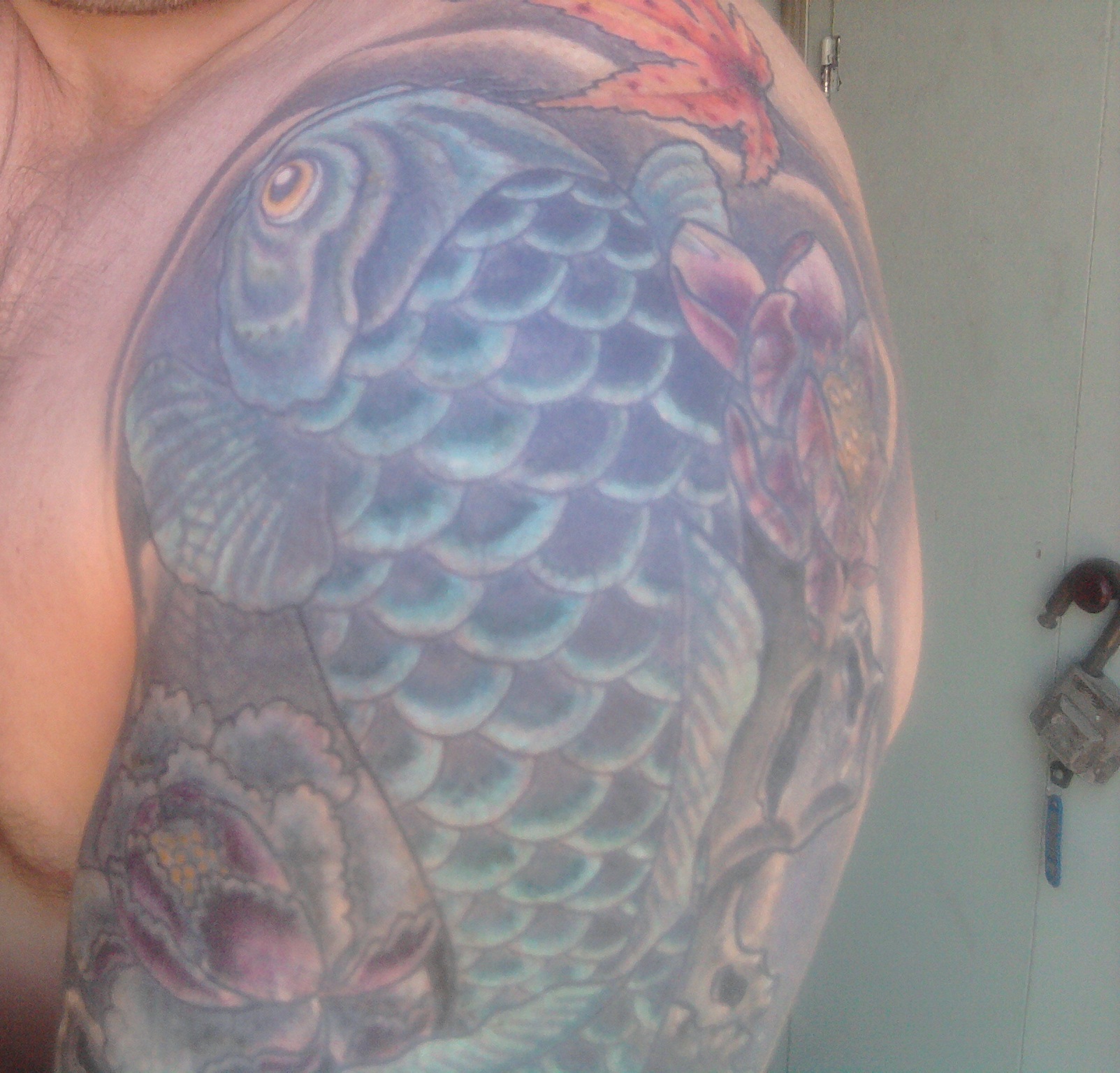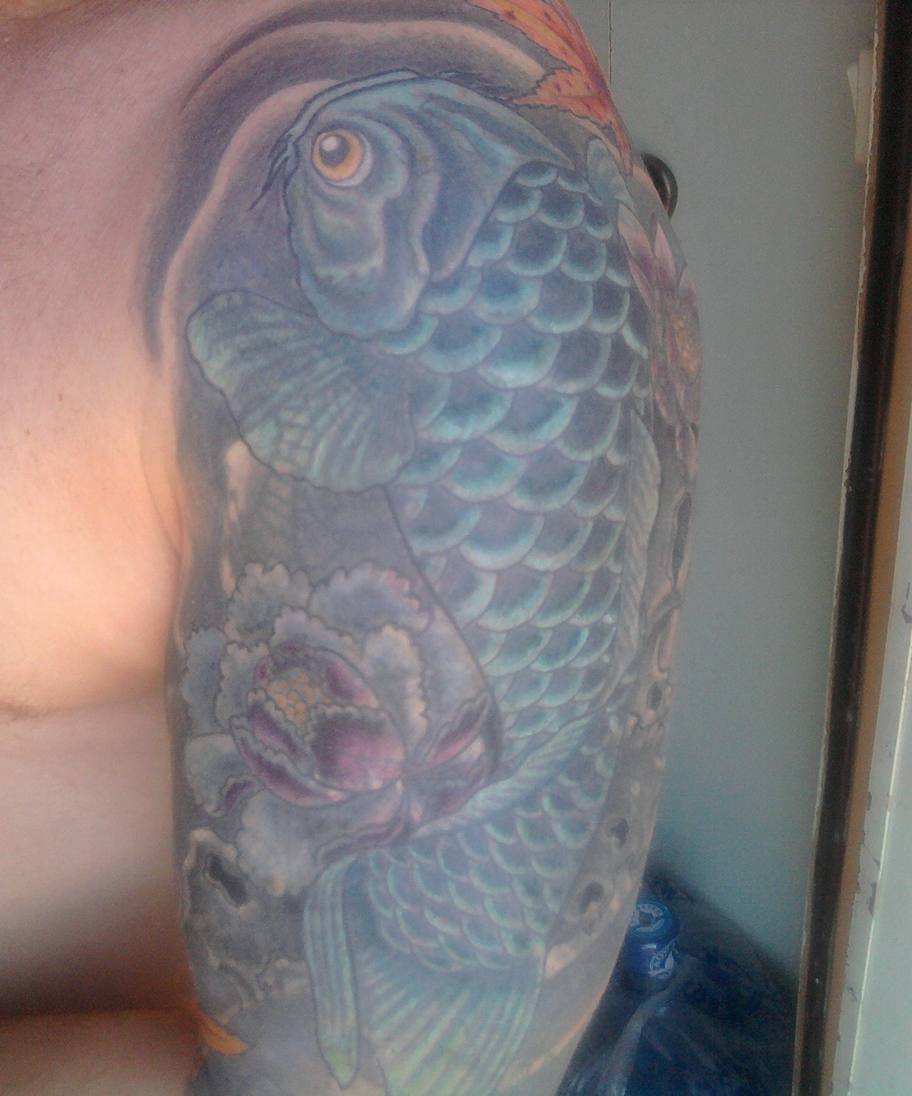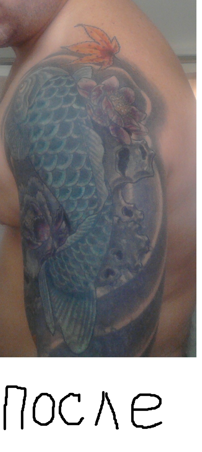 У меня ещё на ноге зехер был - факел с колючкой, по тем временам это было круто, только для настоящих пацанов)) 87-88г. набивали чуть ли не гвоздём и чуть ли не до кости)). Подвал - местный тату салон, мастер тату Жарик судимый раз 200 не меньше)) Кароче грехи молодости перекрывал тотже мастер что и карпа колол, если не видел то вот:но всеравно молодец что перекрыл