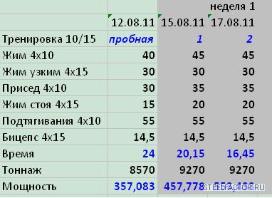 В следующий раз думаю накинуть по 2,5кг везде, кроме подтягиваний и жима стоя.