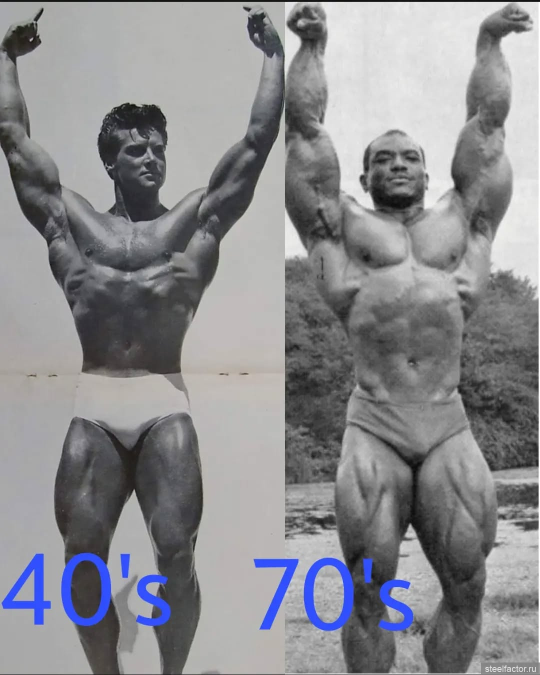 Никто тогда десятки лет не тренировался,чтобы первый раз выйти на сцену. Ключевое- генетика. Далее- хорошая спортивная база с детства (физический труд с детства развнозначен), потом первые 3 года серьёзных по меркам фитнеса нагрузок и первые выступления на сцене, ещё 2-3 года активный рост, затем плато в хорошей физической форме и ещё лет 5 в спорте.