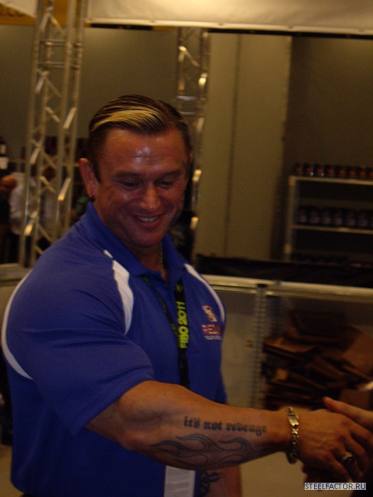 , а тату сделал после фильма Каратель(The Punisher) который вышел в 2004.... после он где то года два носил шмотки с логотипом... уж очень понравился ему этот персонаж