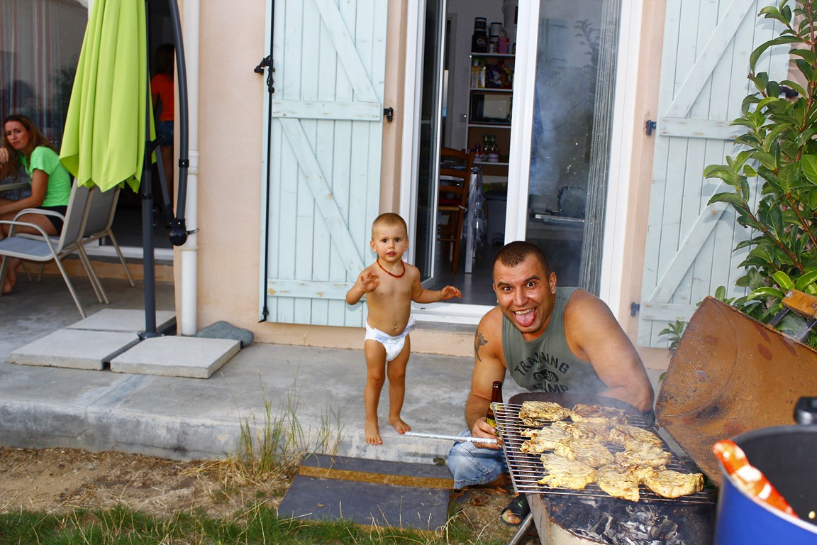 Да не.... просто на фотке плохо видно, но если увиличить, то можно увидеть в руке Димыча веревочку, на которой он за собой эту машинку и таскает.
